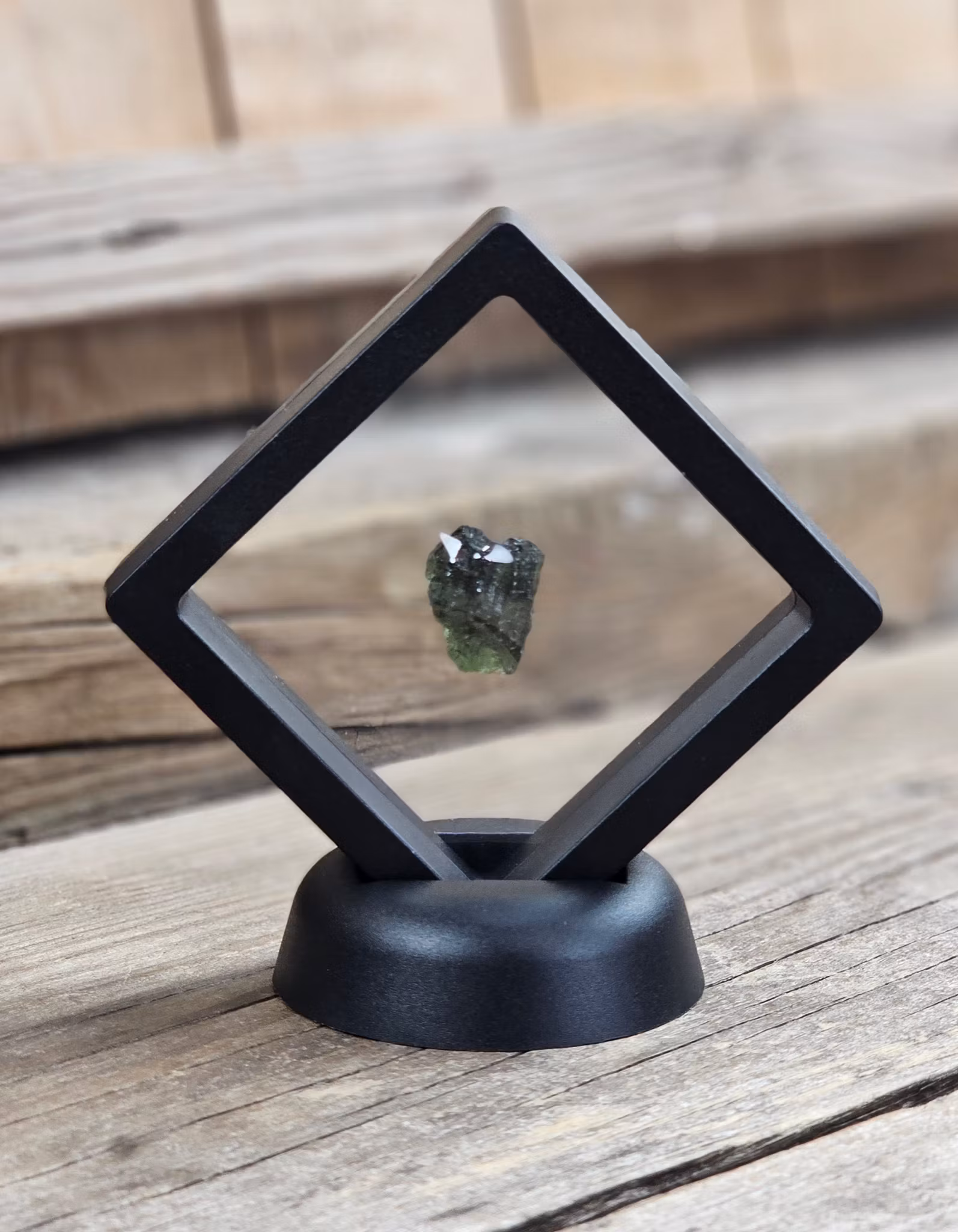 Fantastisk äkta Moldavit i toppkvalité. Moldavit bildades i ett meteoritnedslag för cirka 15 miljoner år sedan. Moldavit är en unik sten med speciell struktur och en underbar olivgrön färg. Ett riktigt samlarobjekt! Observera att display-ställning ingår ej, dessa köpes separat. Tänk på att kristaller kommer från naturen & naturliga sprickor & ojämnhet kan förekomma. Färger kan skilja sig beroende på hur ljuset faller ner på produkten samt även mellan olika bildskärmar m.m.