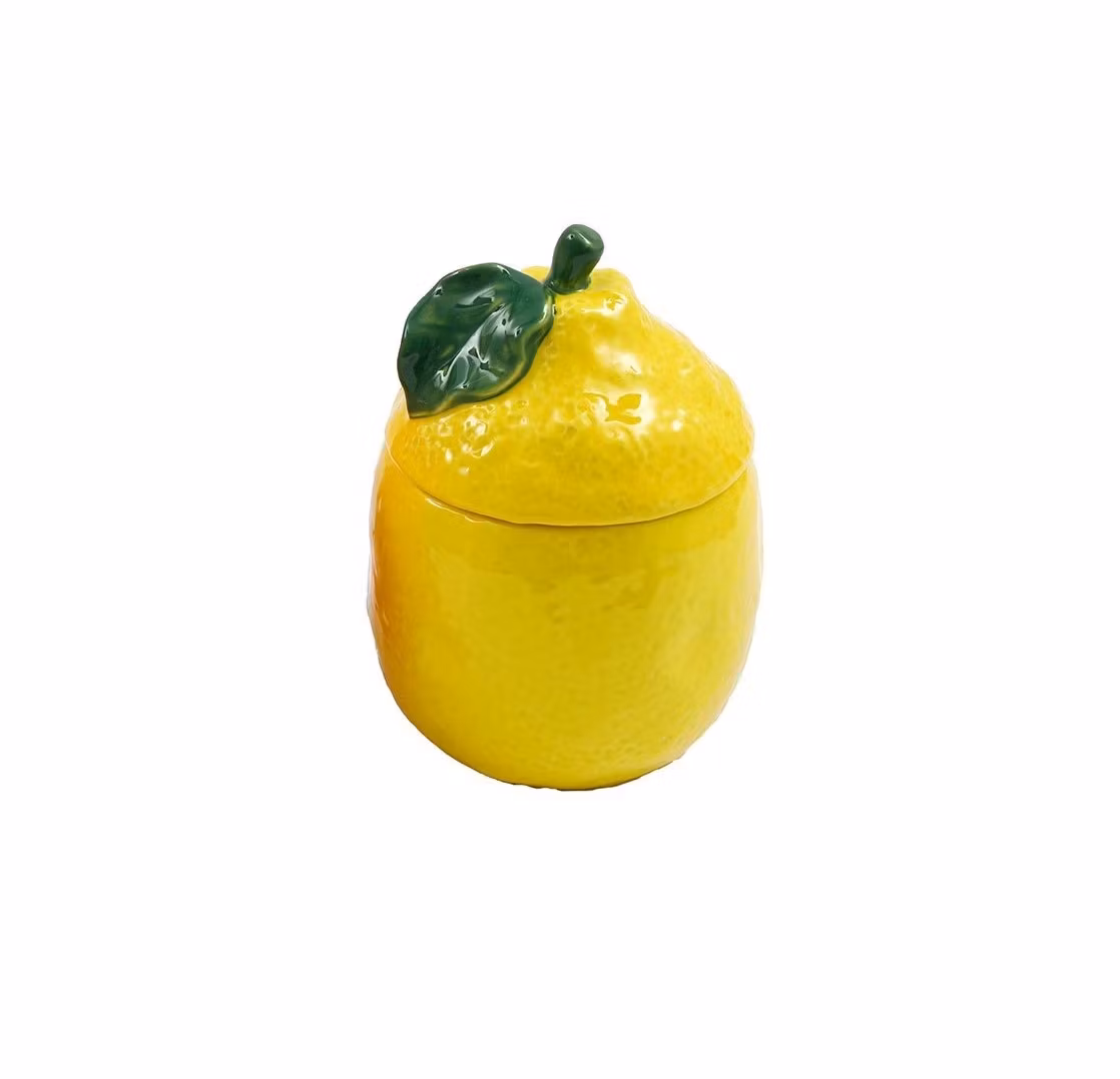 Lägg till lite härlig frukt i din heminredning med en förvaringsburk formad som en läcker citron. Söt förvaring till t.ex. kristaller, smycken eller andra små ting. Du köper en ask i keramik enligt text & bild ovan. Färger kan skilja sig beroende på hur ljuset faller ner på produkten samt även mellan olika bildskärmar m.m.