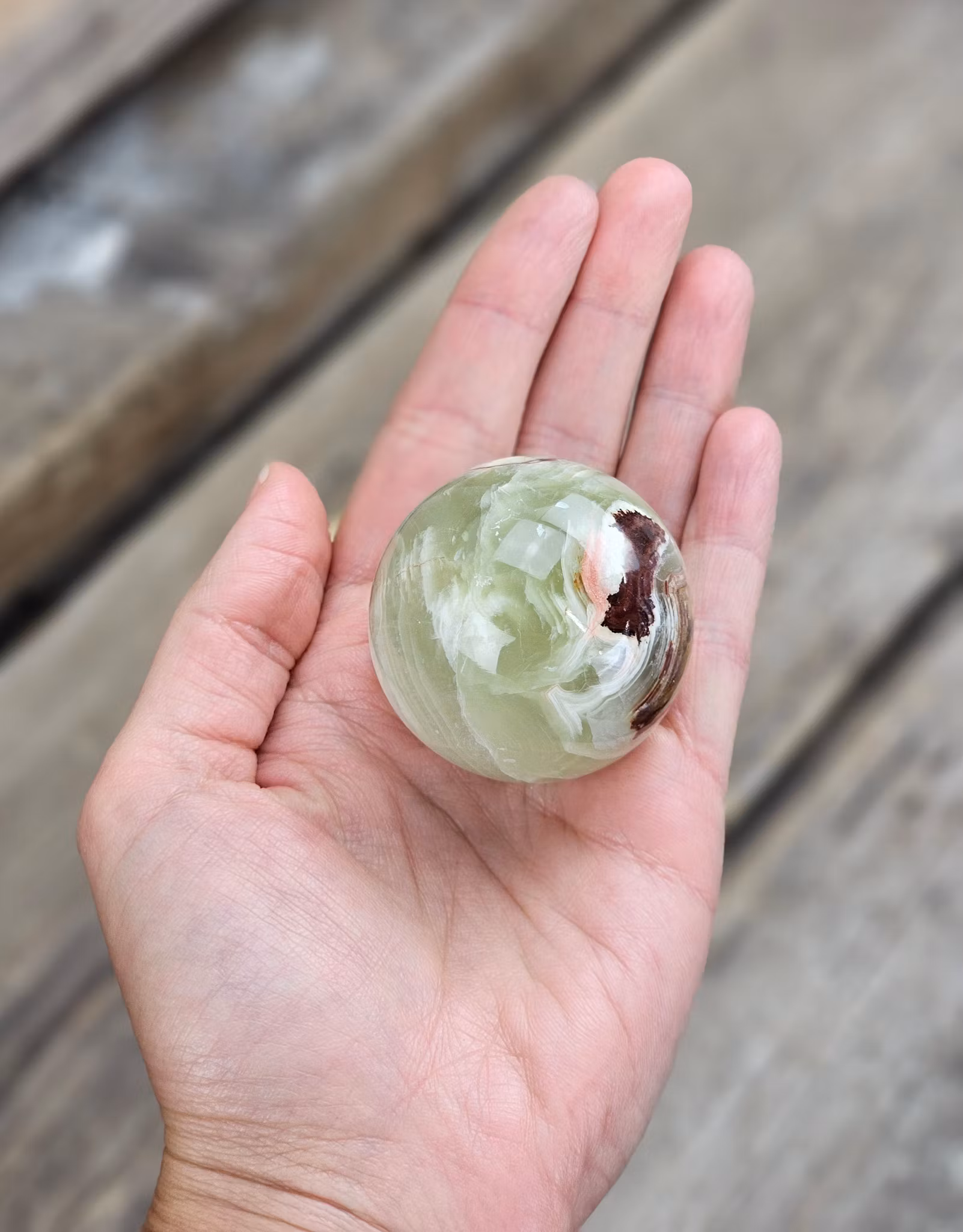 Läckert polerat klot i Grön Aragonit. Observera att klotställ ingår ej. Kristallen på bilderna är den du köper. Tänk på att kristaller kommer från naturen, små skillnader kan därför förekomma i produktens utseende på grund av dess naturmaterial. Färger kan skilja sig beroende på hur ljuset faller ner på kristallen samt även mellan olika bildskärmar m.m.
