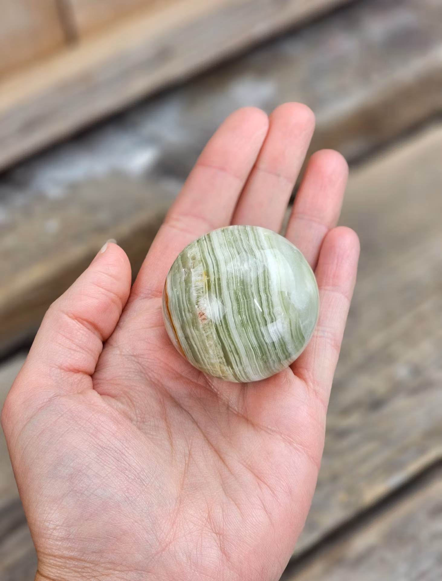Läckert polerat klot i Grön Aragonit. Observera att klotställ ingår ej. Kristallen på bilderna är den du köper. Tänk på att kristaller kommer från naturen, små skillnader kan därför förekomma i produktens utseende på grund av dess naturmaterial. Färger kan skilja sig beroende på hur ljuset faller ner på kristallen samt även mellan olika bildskärmar m.m.
