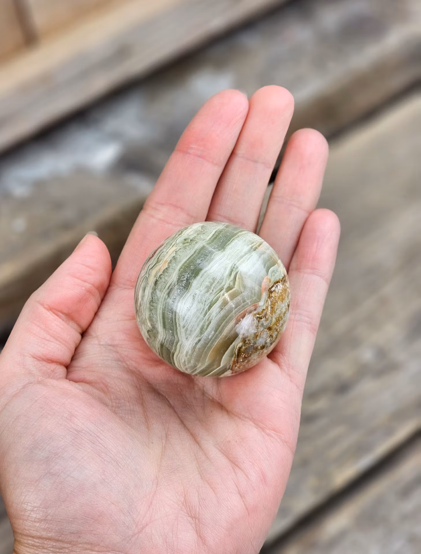 Läckert polerat klot i Grön Aragonit. Observera att klotställ ingår ej. Kristallen på bilderna är den du köper. Tänk på att kristaller kommer från naturen, små skillnader kan därför förekomma i produktens utseende på grund av dess naturmaterial. Färger kan skilja sig beroende på hur ljuset faller ner på kristallen samt även mellan olika bildskärmar m.m.