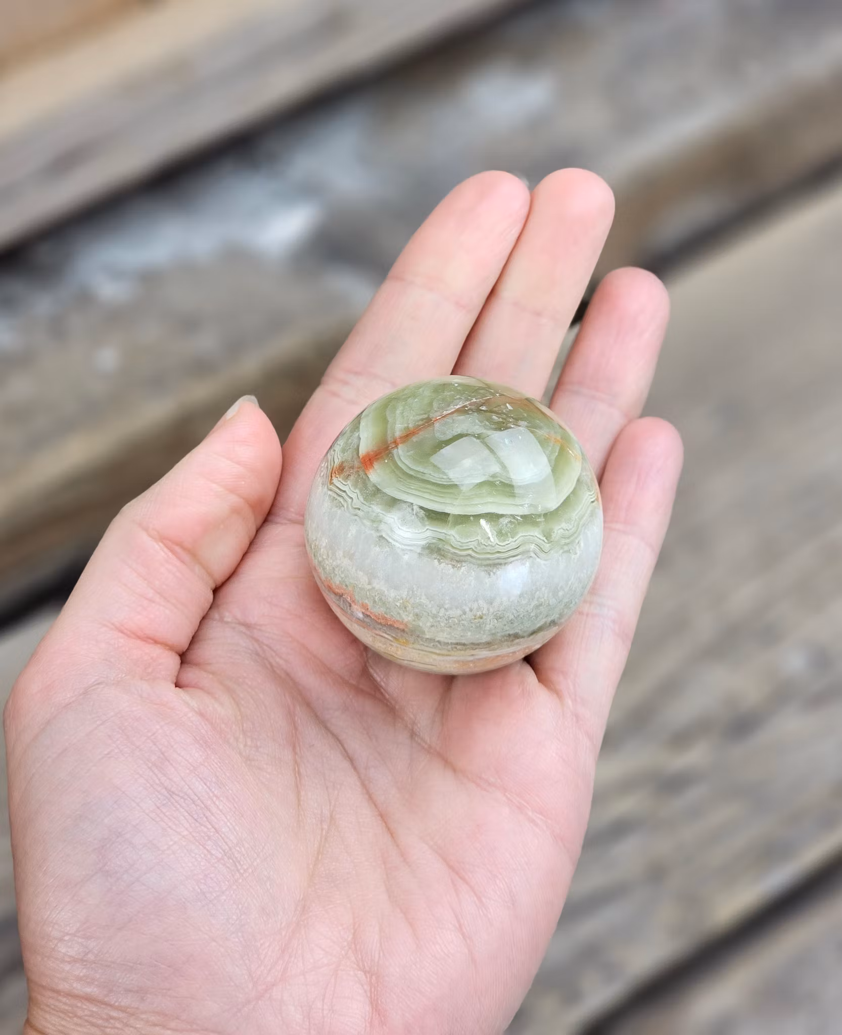 Läckert polerat klot i Grön Aragonit. Observera att klotställ ingår ej. Kristallen på bilderna är den du köper. Tänk på att kristaller kommer från naturen, små skillnader kan därför förekomma i produktens utseende på grund av dess naturmaterial. Färger kan skilja sig beroende på hur ljuset faller ner på kristallen samt även mellan olika bildskärmar m.m.