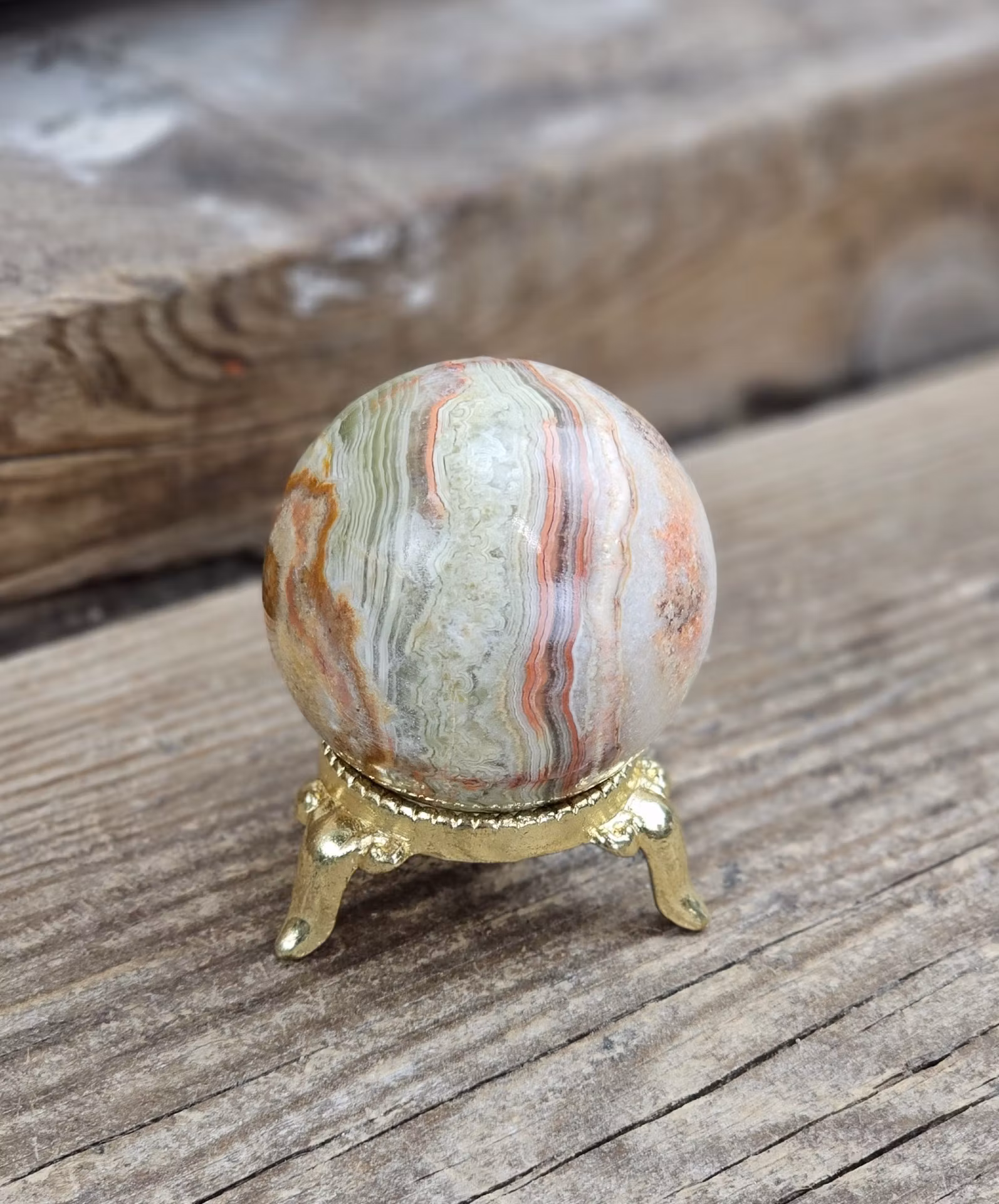 Läckert polerat klot i Grön Aragonit. Observera att klotställ ingår ej. Kristallen på bilderna är den du köper. Tänk på att kristaller kommer från naturen, små skillnader kan därför förekomma i produktens utseende på grund av dess naturmaterial. Färger kan skilja sig beroende på hur ljuset faller ner på kristallen samt även mellan olika bildskärmar m.m.