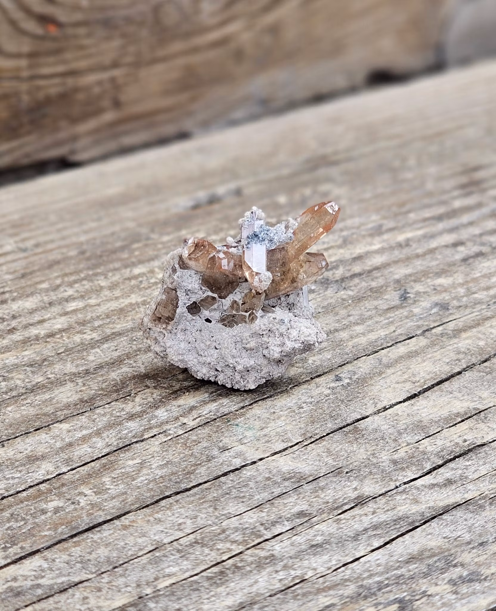 Ett fantastiskt vackert exemplar av den eftertraktade och exklusiva Champagne Topas i matrix! Mycket hög kvalité. Kristallen på bilderna är den du köper. Tänk på att kristaller kommer från naturen, små skillnader kan därför förekomma i produktens utseende på grund av dess naturmaterial. Färger kan skilja sig beroende på hur ljuset faller ner på kristallen samt även mellan olika bildskärmar m.m.