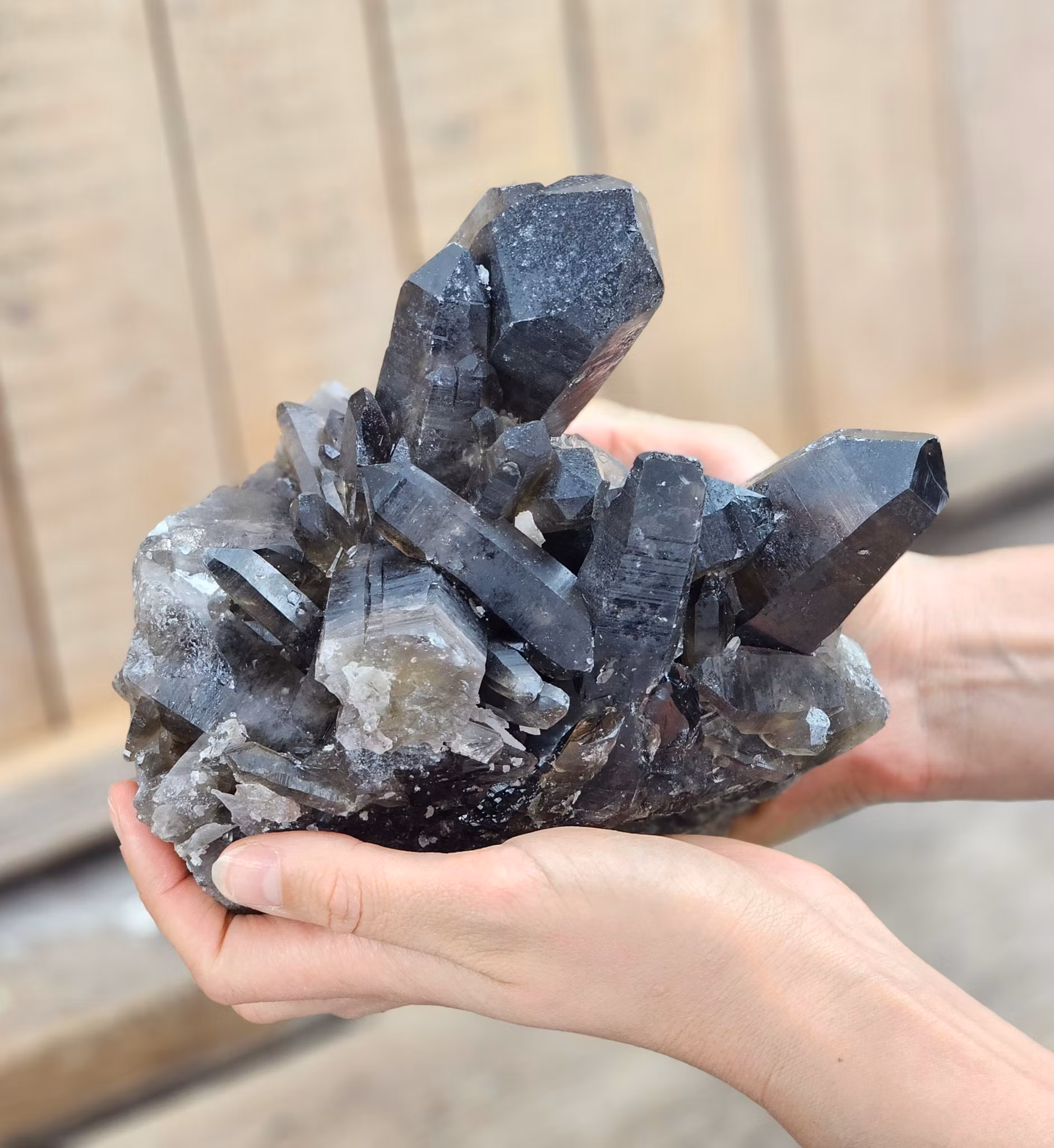 Otroligt vackert, helt naturligt Rökkvartskluster med maffig storlek. Ett riktigt dröm-exemplar! Kristallen på bilderna är den du köper. Tänk på att kristaller kommer från naturen, små skillnader kan därför förekomma i produktens utseende på grund av dess naturmaterial. Färger kan skilja sig beroende på hur ljuset faller ner på kristallen samt även mellan olika bildskärmar m.m.