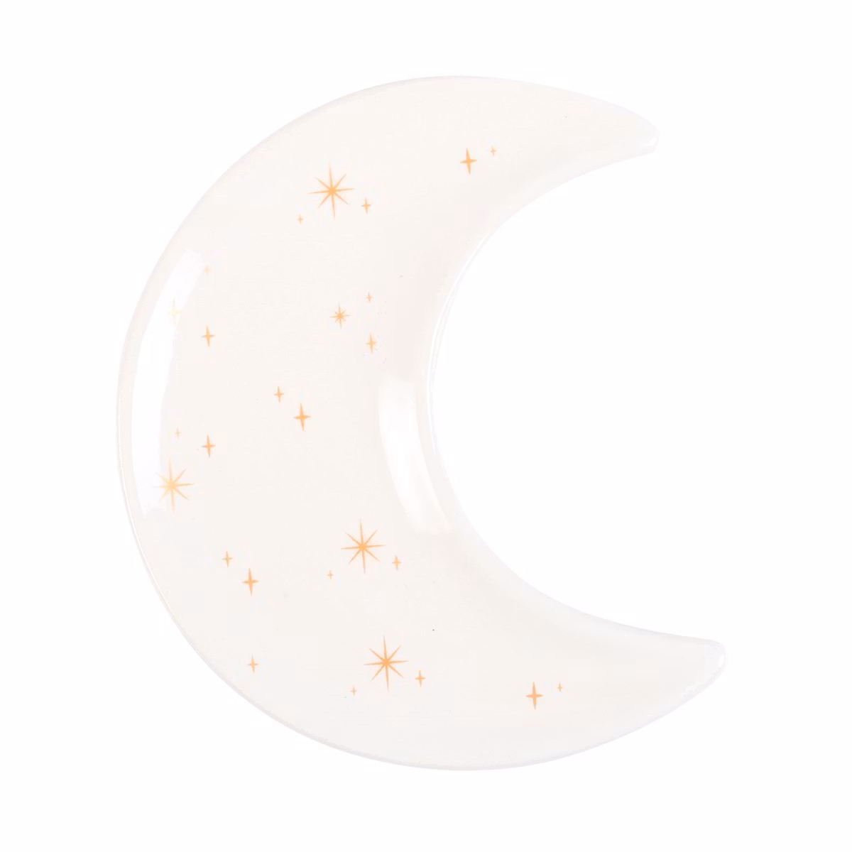 - En vacker vit måne-skål i keramik med stjärndesign i guld (ca. 10x12 cm).