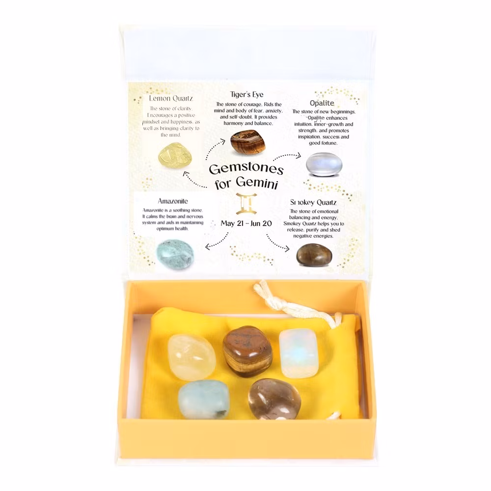 Kristallkit för Tvillingarna (Gemini) - 5 trumlade stenar i presentask