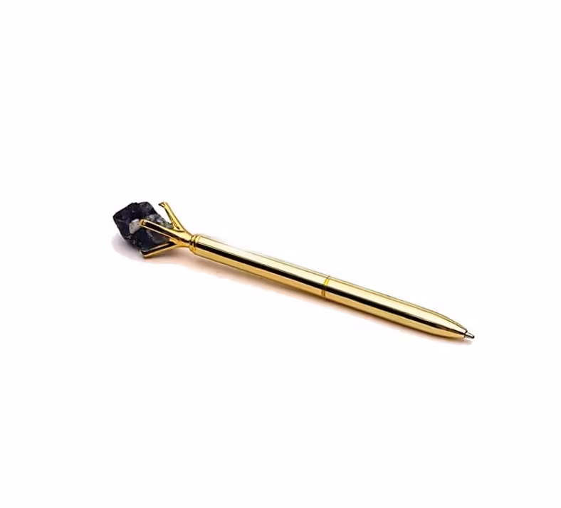 En elegant kristallpenna som kombinerar stil och klarhet. Fluorit är kristallen som förknippas med kreativitet, fokus och lugn struktur i tankarna. Vår kristallpenna i guldfinish toppad med rå Fluorit ger en balanserad och klar känsla vid skrivande – perfekt för studier, planering, anteckningar och som meningsfull gåva. Säljs styckvis.