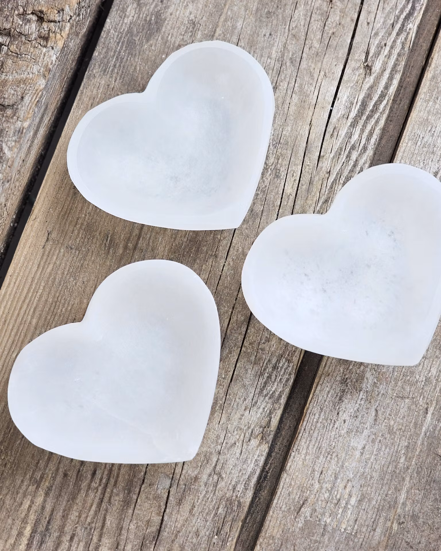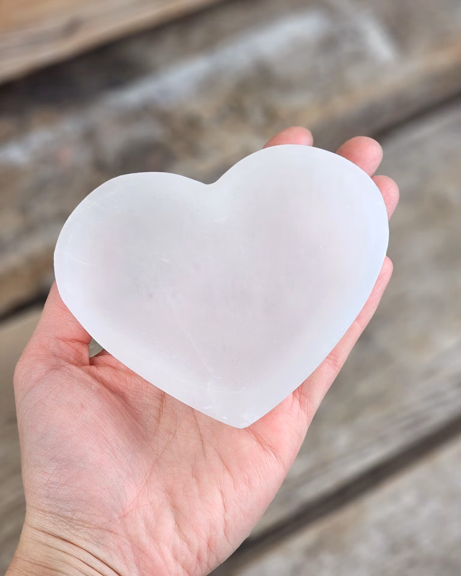 Vacker skål i Vit Selenit med formen av ett hjärta. Matt finish på dessa, ej polerad glans som övriga skålar. Jättefin förvaring till t.ex. dina trumlade stenar eller smycken! Observera att kristallsmyckena i skålen inte ingår, dessa köpes separat i vår butik. Skålarna säljes styckvis. De skiftar i utseende. Du köper en slumpvis liknande skål enligt text & bild ovan. Tänk på att kristaller kommer från naturen & naturliga sprickor & ojämnheter kan förekomma. Färger kan skilja sig beroende på hur ljuset faller ner på kristallen samt även mellan olika bildskärmar m.m.