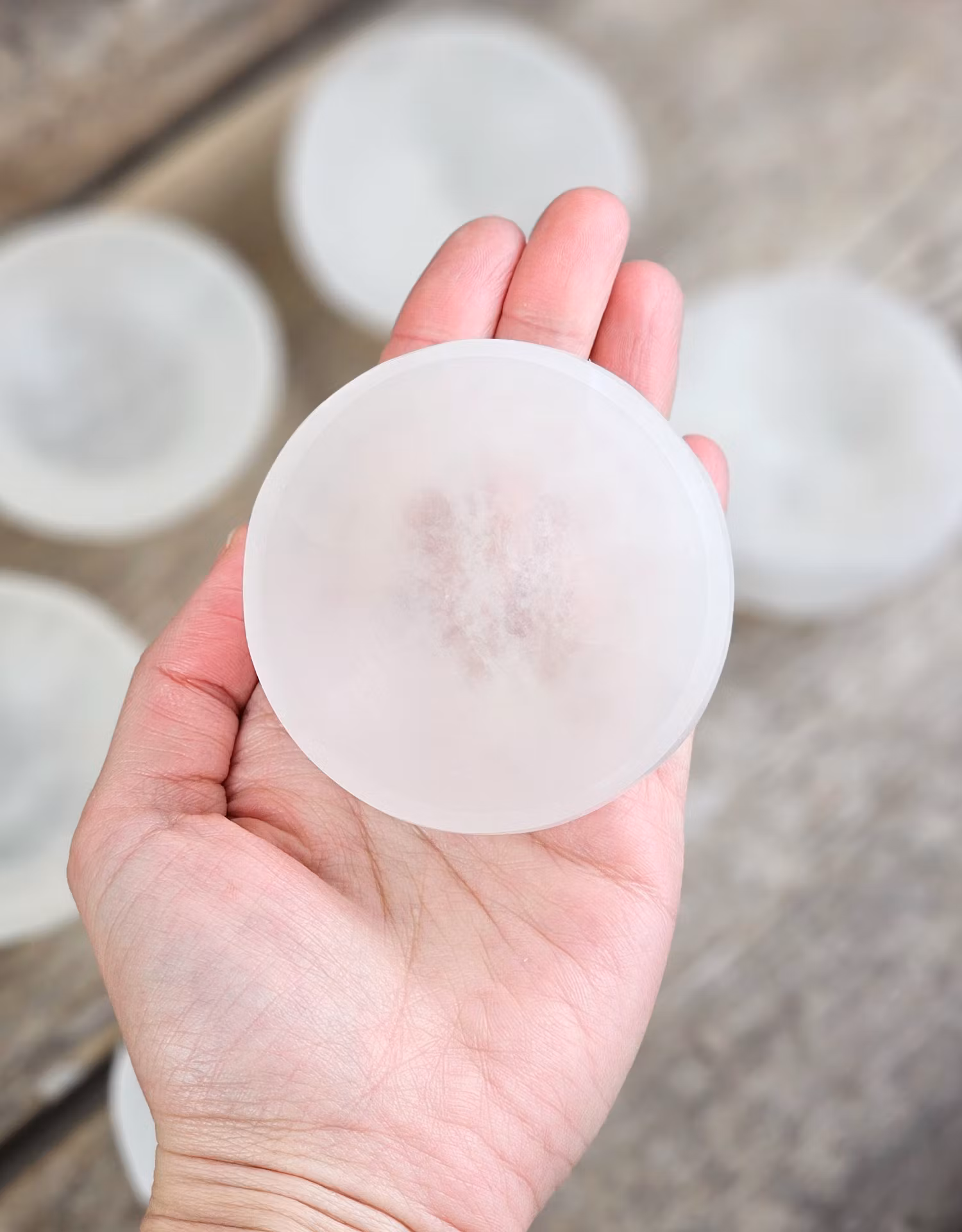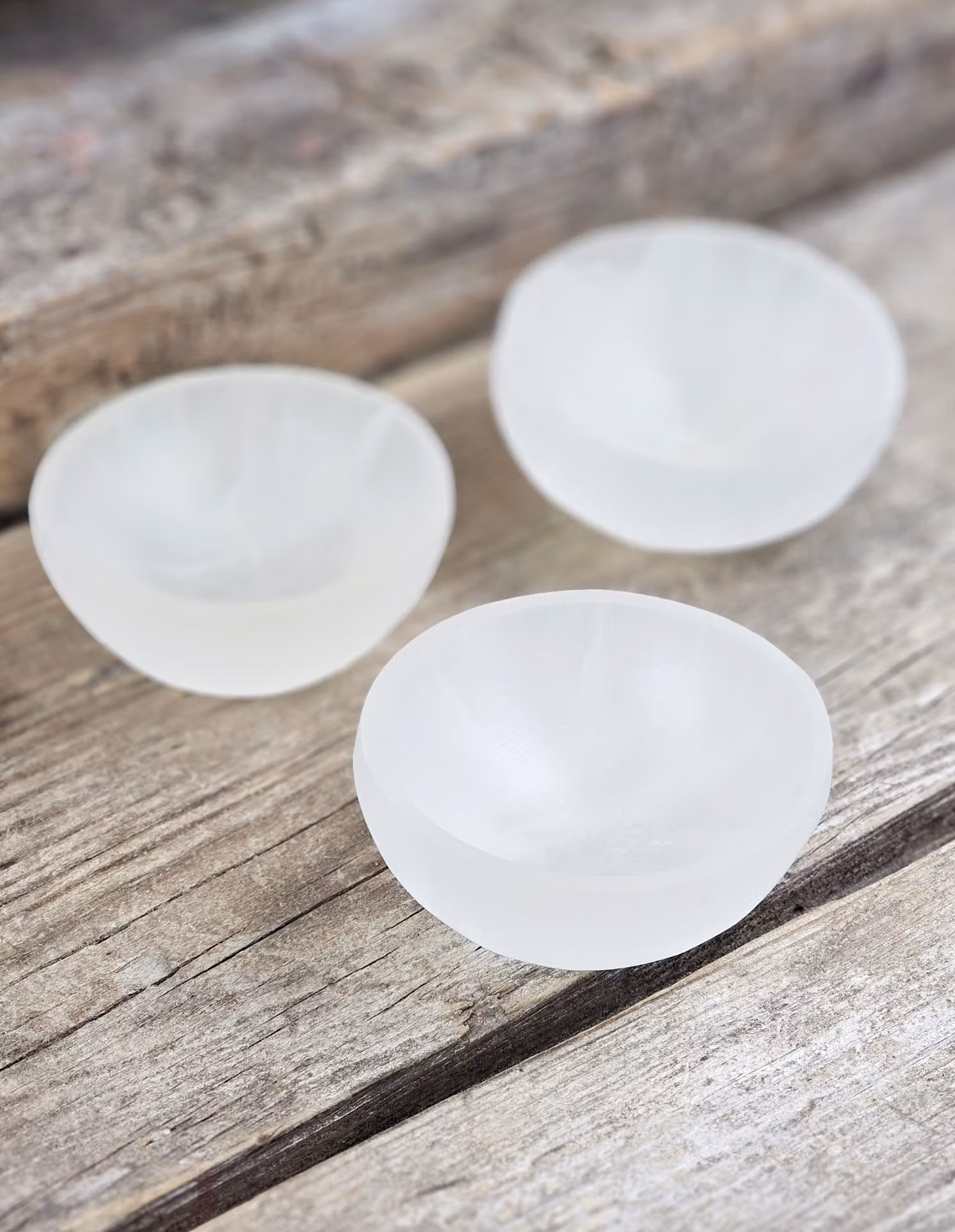 Mycket vacker liten skål i Vit Selenit. Denna modell är matt, ej glansigt polerad som våra övriga runda skålar. Fin förvaring till t.ex. dina små trumlade stenar eller några smycken. Observera att smycken/kristaller i skålen inte ingår, dessa köpes separat i vår butik. Skålarna säljes styckvis. De skiftar i utseende. Du köper en slumpvis liknande skål enligt text & bild ovan. Tänk på att kristaller kommer från naturen & naturliga sprickor & ojämnheter kan förekomma. Färger kan skilja sig beroende på hur ljuset faller ner på kristallen samt även mellan olika bildskärmar m.m.