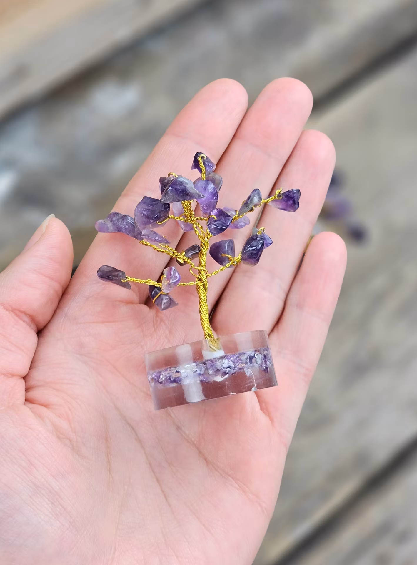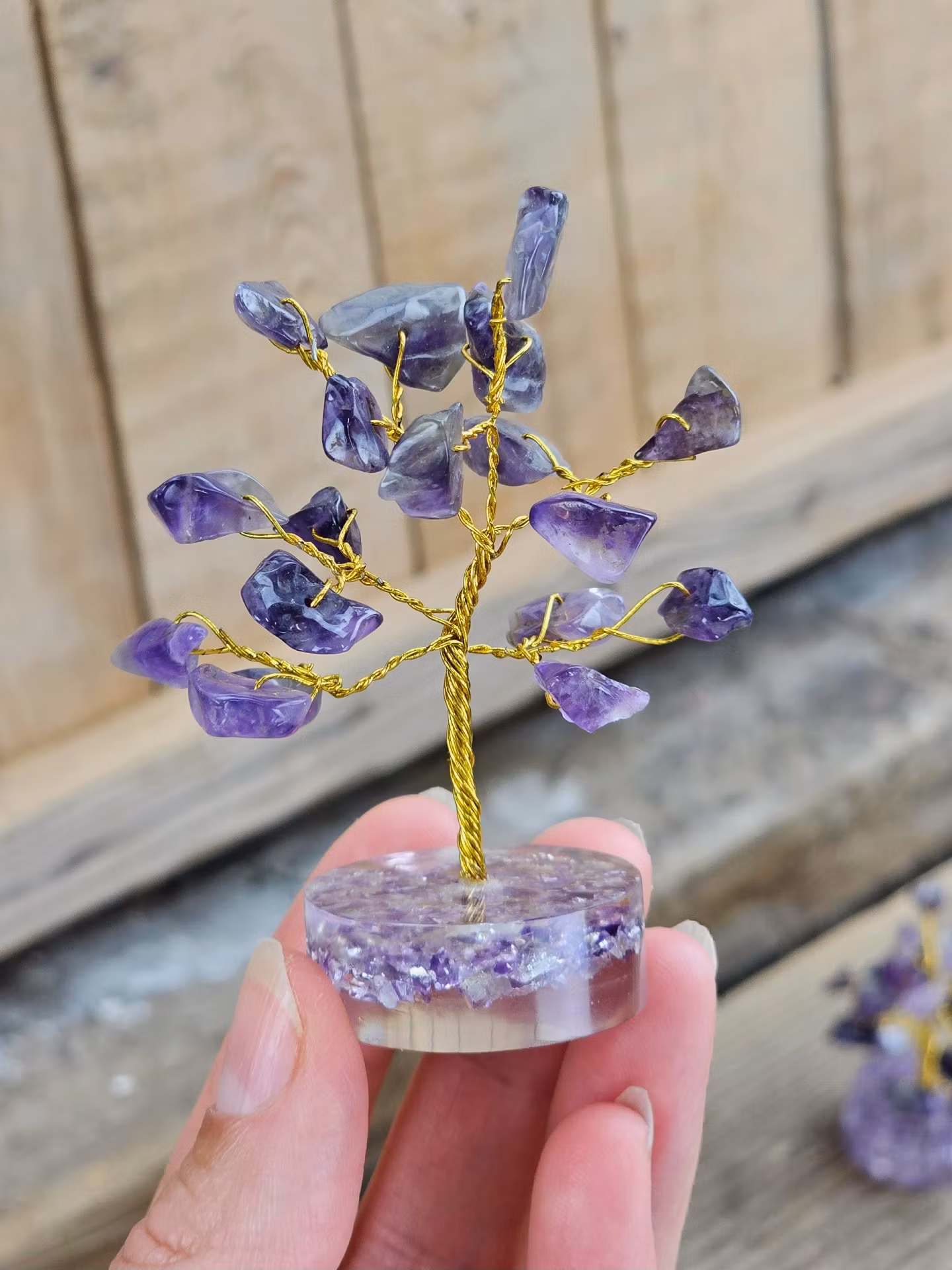Ametist, med sina vackra lila nyanser, är en kraftfull kristall för att skapa ett lugn och öka andlig utveckling. Den hjälper dig att nå djupare insikter och utstrålar ett lugn. Den är idealisk för att skapa en avslappnande atmosfär och främja inre frid. Perfekt för att hitta balans i vardagen. Träden förmedlar en sublim Feng Shui-energi som berikar ditt utrymme. Deras skönhet är inte bara en fröjd för ögat, utan de sprider även ett lugn som omsluter sinnet.
