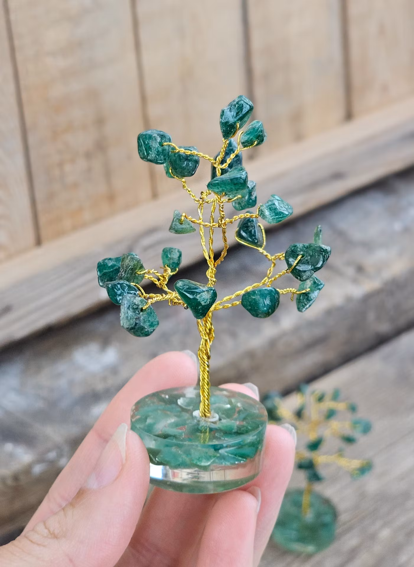Grön Aventurin är lyckans och möjligheternas sten! Den öppnar hjärtat för nya äventyr och fyller dig med hopp och optimism. Med Grön Aventurin vid din sida, vågar du drömma stort och följa dina hjärtans önskningar. Låt denna magiska kristall guida dig mot framgång och glädje i varje steg du tar. Träden förmedlar en sublim Feng Shui-energi som berikar ditt utrymme. Deras skönhet är inte bara en fröjd för ögat, utan de sprider även ett lugn som omsluter sinnet.