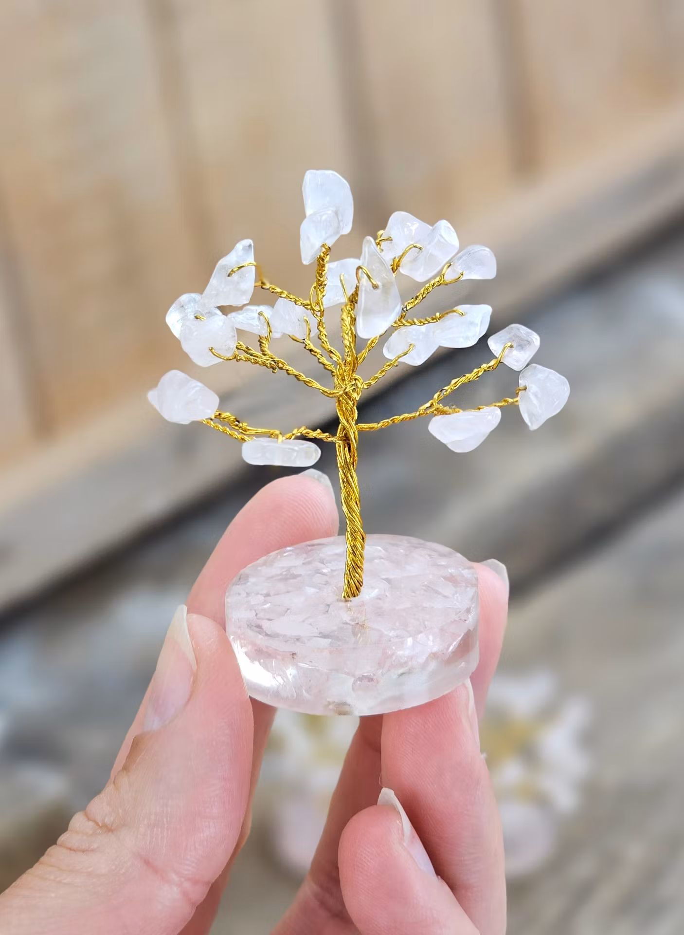 Kristallträd är dekorativa konstverk skapade med unika kristaller. Varje kristallträd består av en stam och grenar prydda med små ädelstenar, vilka var och en bär på sin egen symbolik och egenskaper. Trädets struktur representerar en stark grund och tillväxt, medan kristallerna tros överföra sina specifika energier till omgivningen. Kristallträd används ofta inom Feng Shui och Reiki för att balansera energiflödet i ett rum och främja harmoni och läkning. Genom att välja ett kristallträd som resonerar med dina personliga mål eller andliga väg kan du skapa en meningsfull koppling till detta unika konstverk och använda det som ett verktyg för reflektion och tillväxt. Dessa vackra och unika konstverk är perfekta gåvor för alla tillfällen, från dop, studentfiranden eller bröllop.