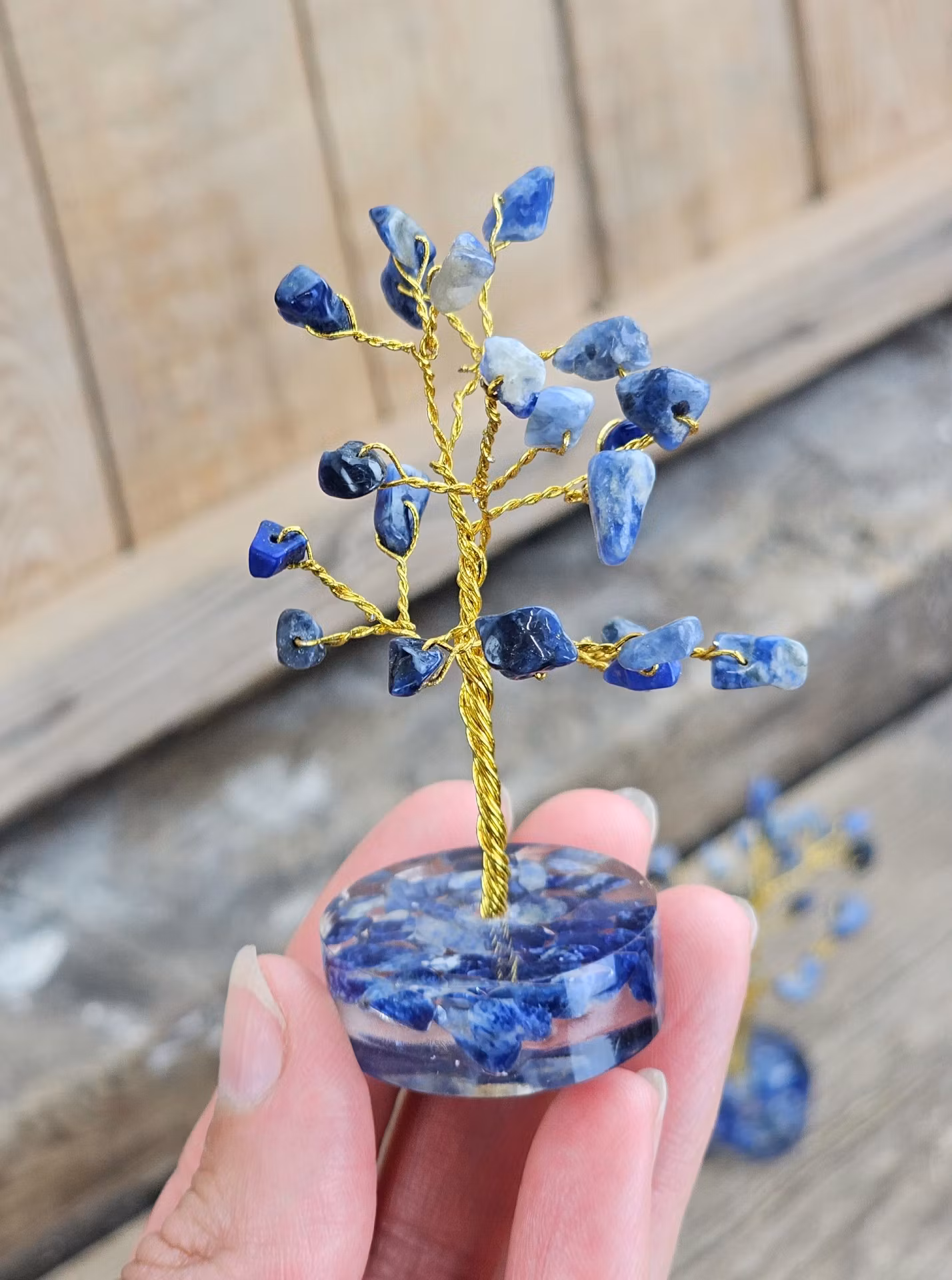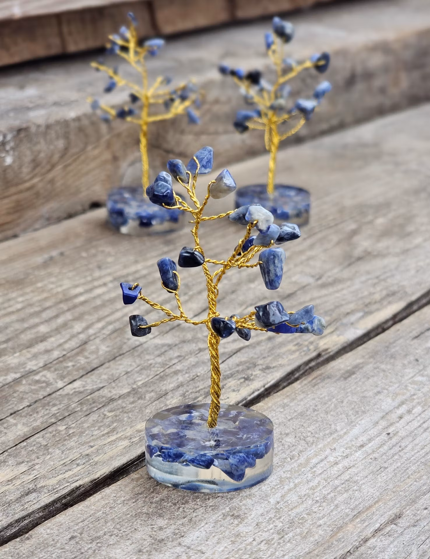 Den djupblå stenen Sodalit är en symbol för klarhet och inre frid. Sodalit kopplar oss till vår inre visdom, vilket ger oss ett högre perspektiv på livet och hjälper oss att närma oss samtal med klarhet. Låt Sodalit vägleda dig genom livets stormar och inspirera till mod och autenticitet. Träden förmedlar en sublim Feng Shui-energi som berikar ditt utrymme. Deras skönhet är inte bara en fröjd för ögat, utan de sprider även ett lugn som omsluter sinnet.