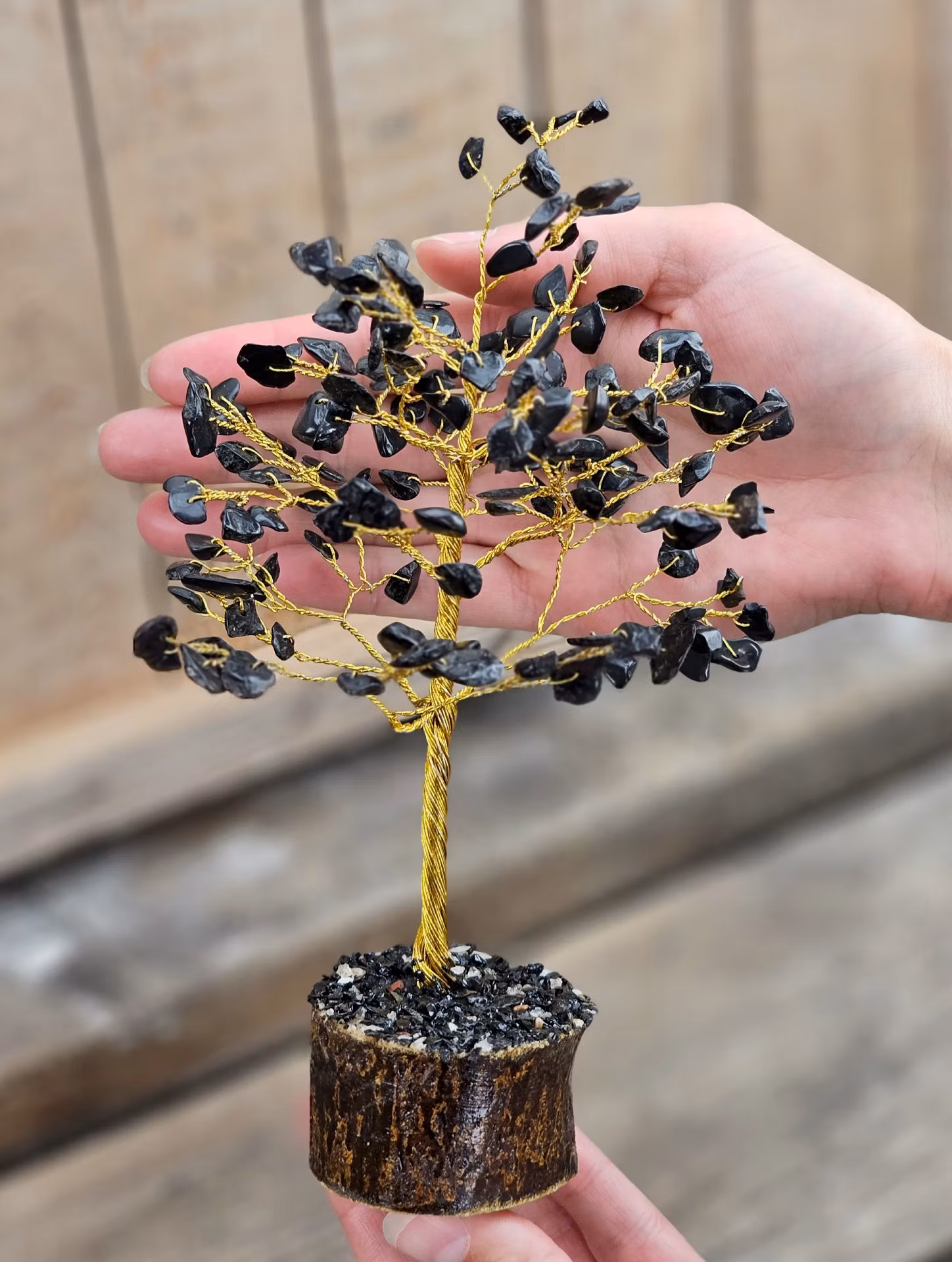 Svart Agat är en skyddande sten som ger emotionell och mental stabilitet. Dess milda jordande energi främjar lugn och avslappning, vilket hjälper dig att möta livets utmaningar med inre frid och styrka. Låt denna kristall inspirera dig att stå stadigt och tryggt! Träden förmedlar en sublim Feng Shui-energi som berikar ditt utrymme. Deras skönhet är inte bara en fröjd för ögat, utan de sprider även ett lugn som omsluter sinnet.