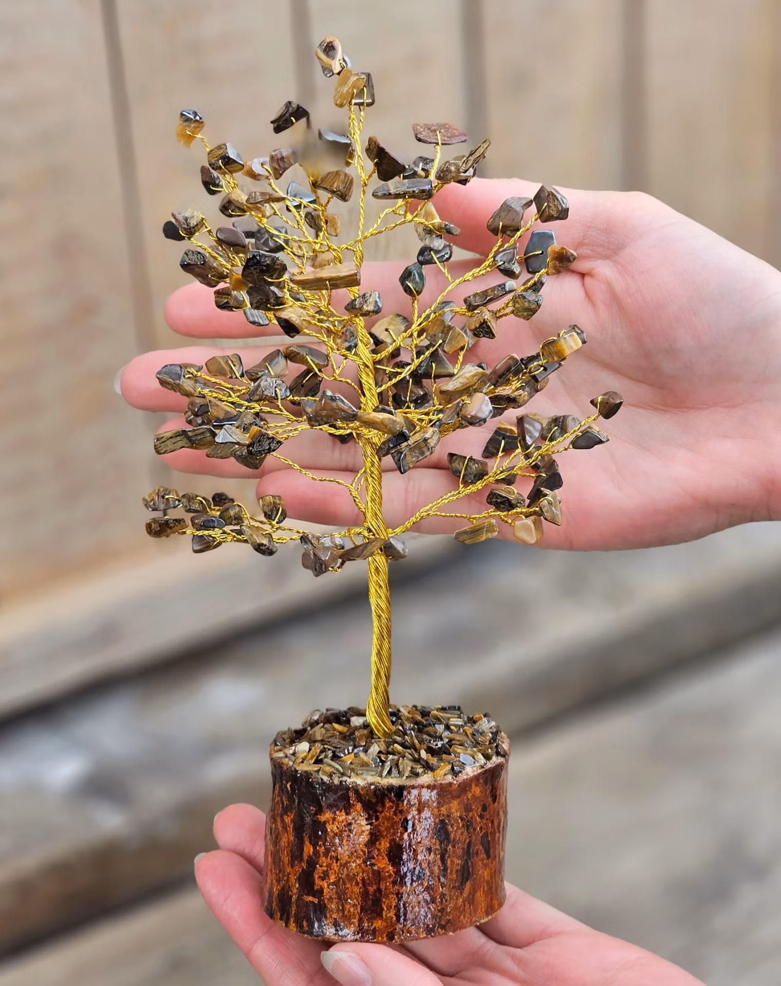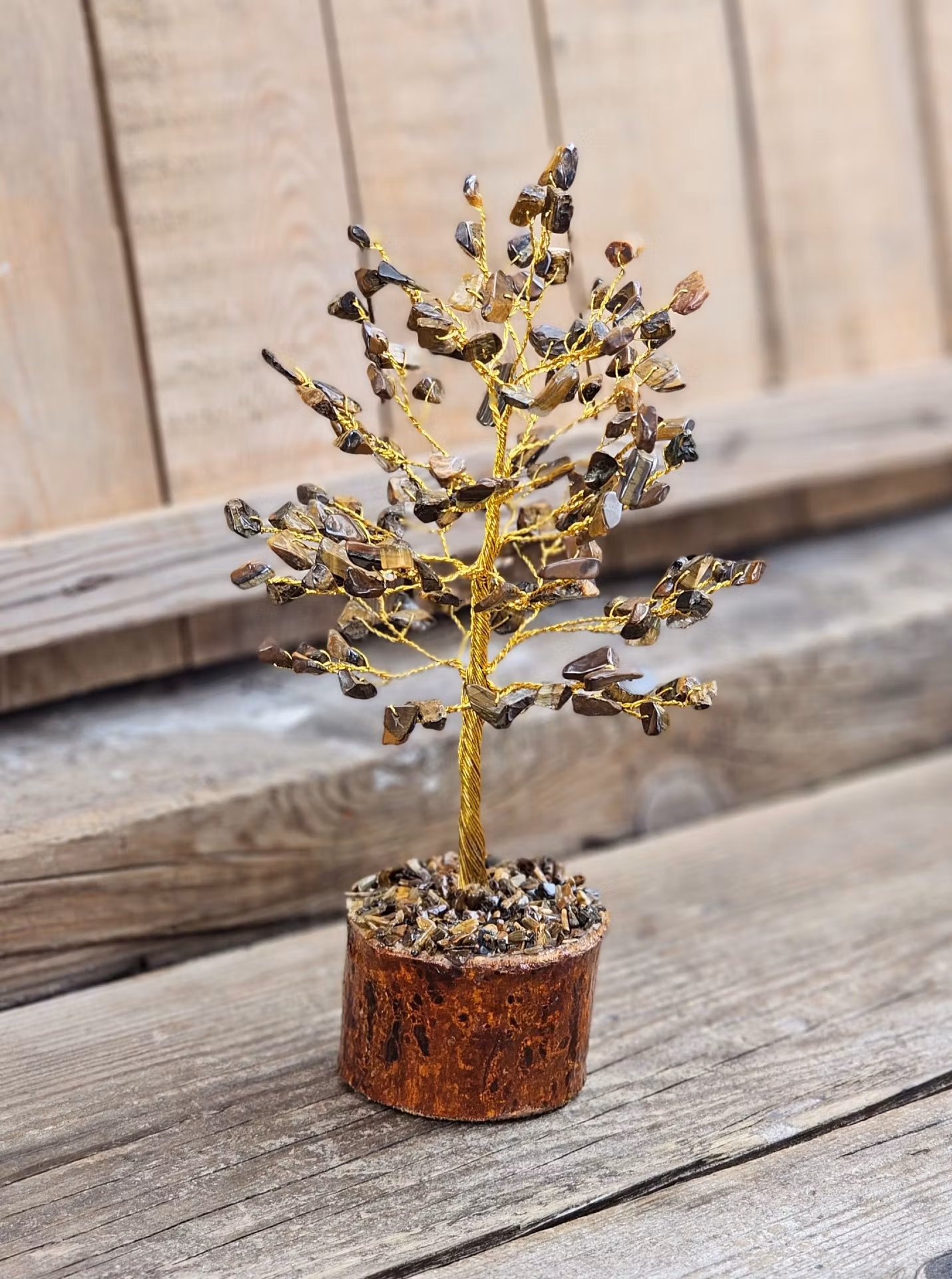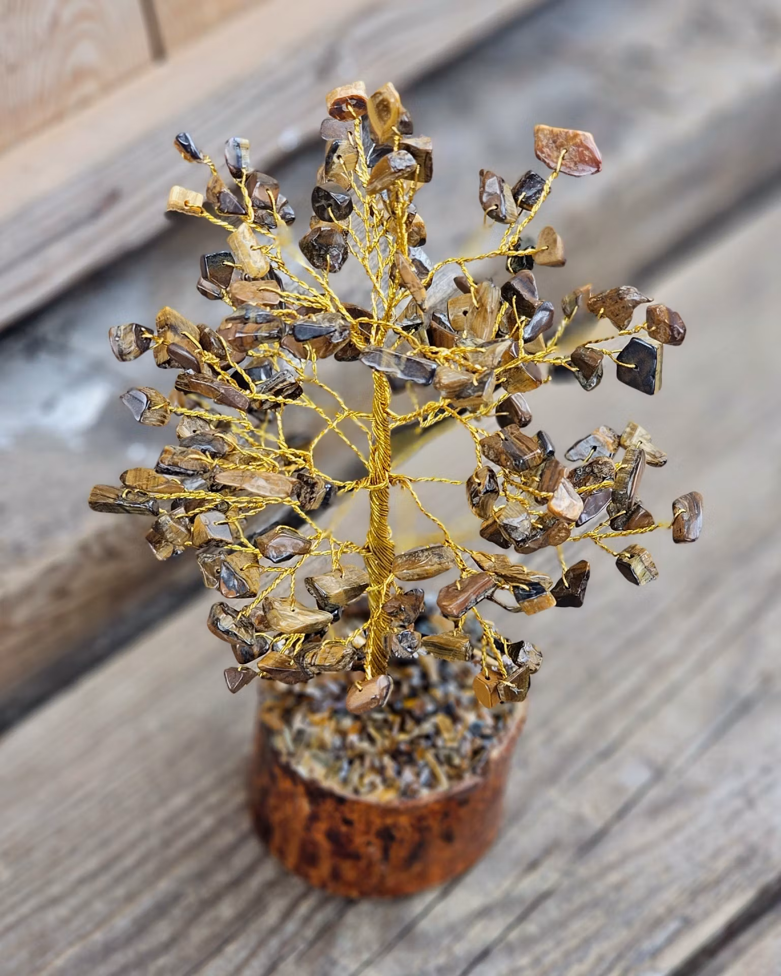 Tigeröga är styrkans kristall, kopplad till solen och solar plexus. Den sprider värme och fyller dig med energi. Med Tigeröga vid din sida, möter du livets utmaningar med mod och självförtroende. Låt denna kraftfulla sten inspirera dig att stå stark och följa dina drömmar! Träden förmedlar en sublim Feng Shui-energi som berikar ditt utrymme. Deras skönhet är inte bara en fröjd för ögat, utan de sprider även ett lugn som omsluter sinnet.