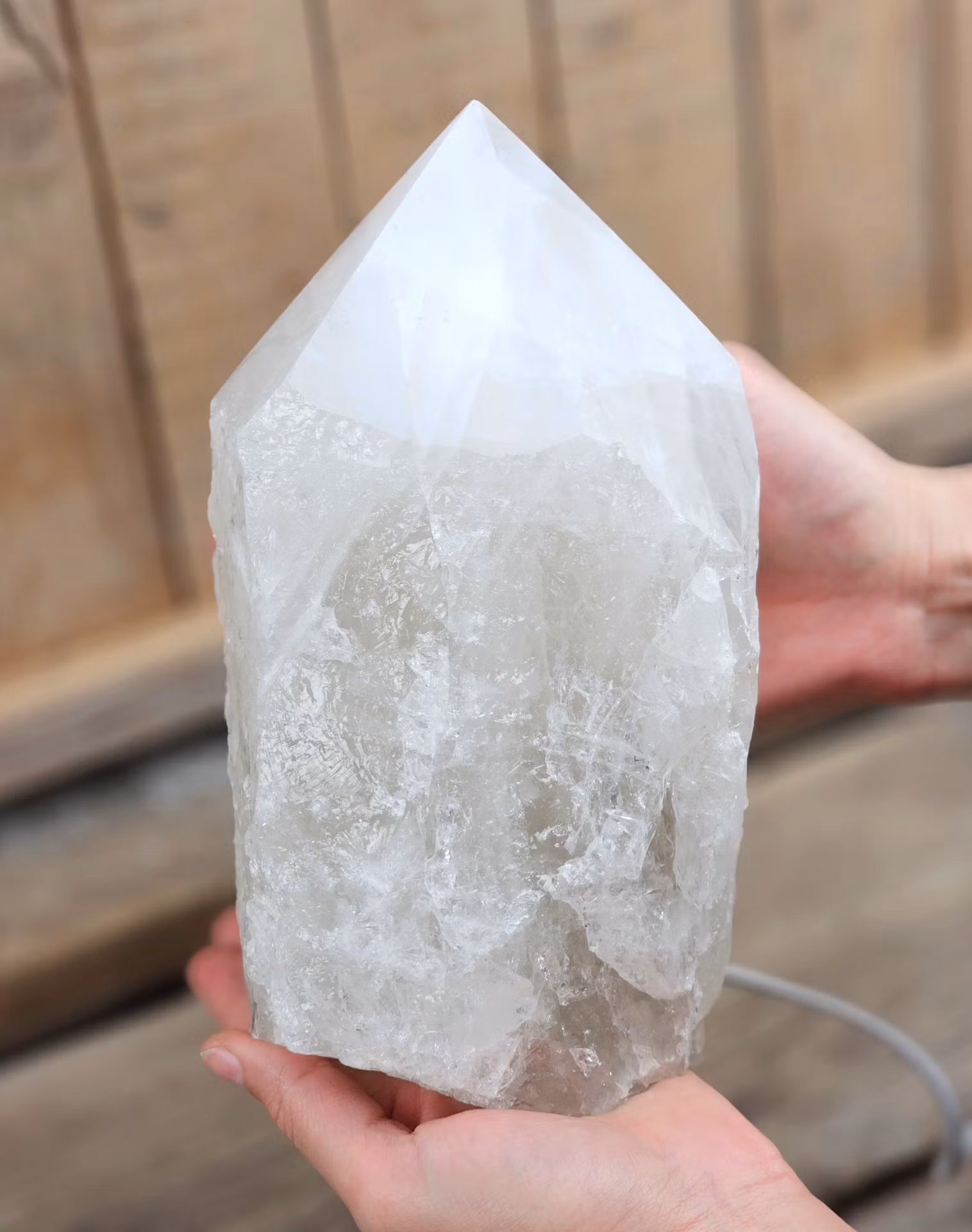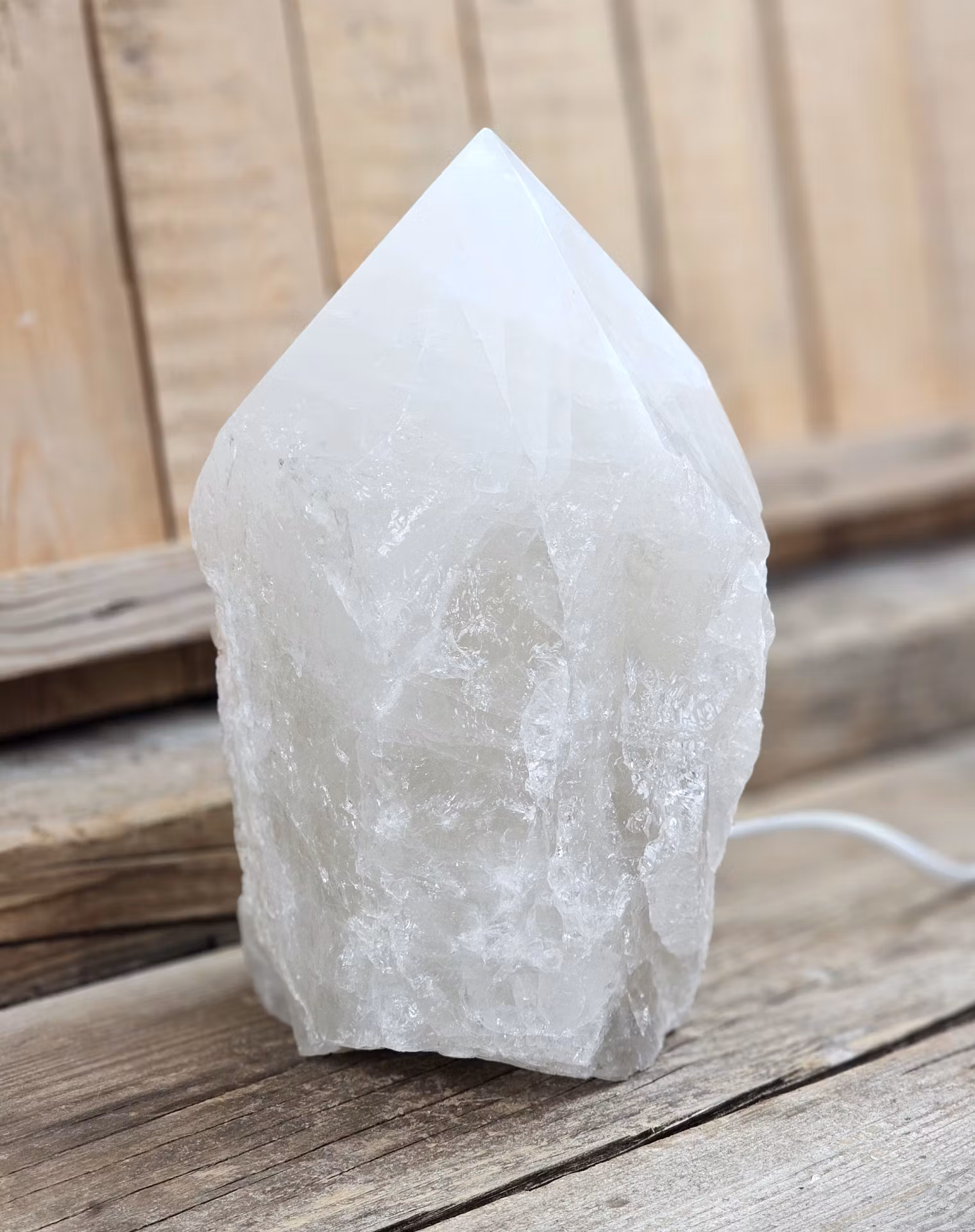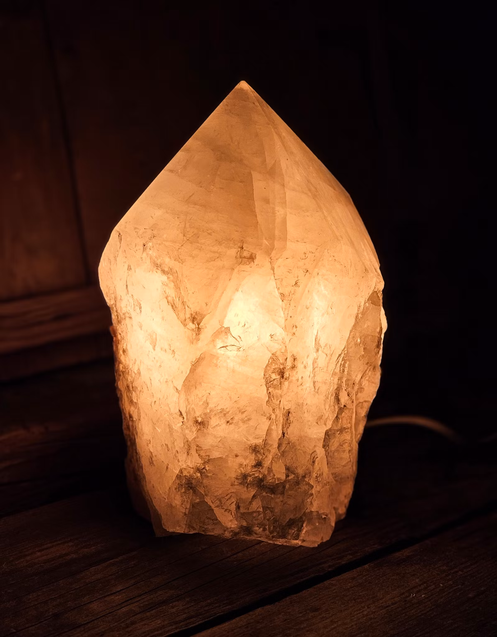 Fantastiskt vacker stor lampa i Bergkristall, med lite rökiga inslag ger det en helt magisk effekt. Råa sidor och slipad topp, som en riktigt stor spets! Mycket hög kvalité. Oslagbart vackert när man tänder den, en unik detalj i hemmet som skapar en underbar stämning. Kristallen på bilderna är den du köper. Tänk på att kristaller kommer från naturen, små skillnader kan därför förekomma i produktens utseende på grund av dess naturmaterial. Färger kan skilja sig beroende på hur ljuset faller ner på kristallen samt även mellan olika bildskärmar m.m.