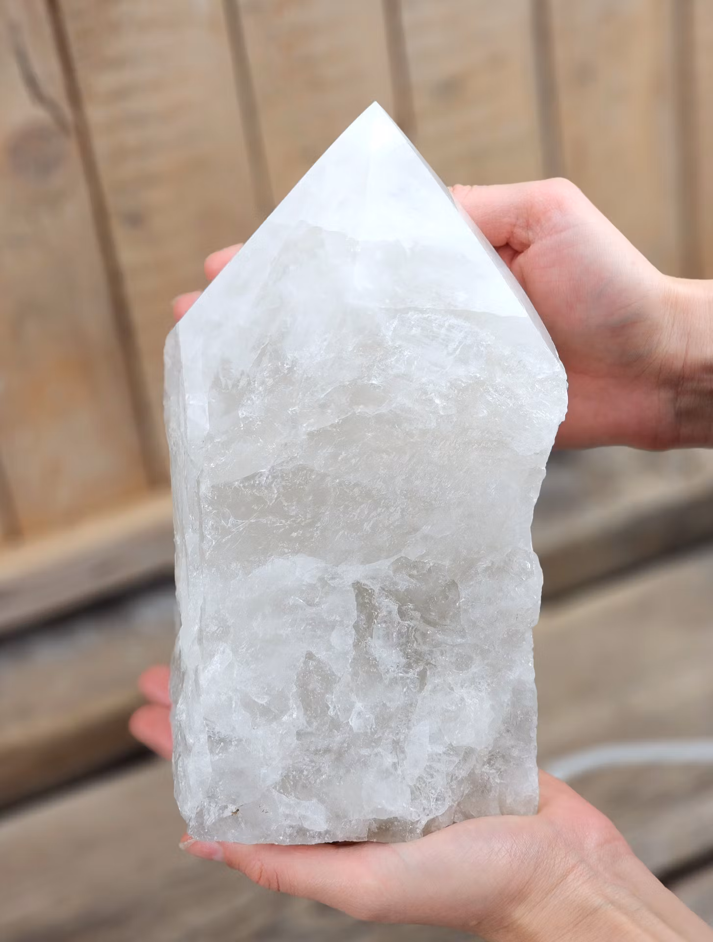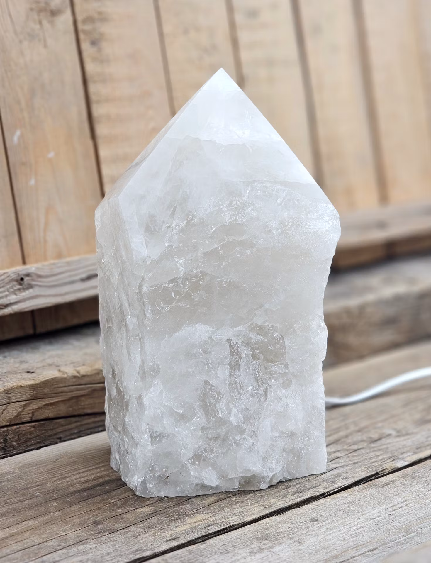 Fantastiskt vacker stor lampa i Bergkristall, med lite rökiga inslag ger det en helt magisk effekt. Råa sidor och slipad topp, som en riktigt stor spets! Mycket hög kvalité. Oslagbart vackert när man tänder den, en unik detalj i hemmet som skapar en underbar stämning. Kristallen på bilderna är den du köper. Tänk på att kristaller kommer från naturen, små skillnader kan därför förekomma i produktens utseende på grund av dess naturmaterial. Färger kan skilja sig beroende på hur ljuset faller ner på kristallen samt även mellan olika bildskärmar m.m.