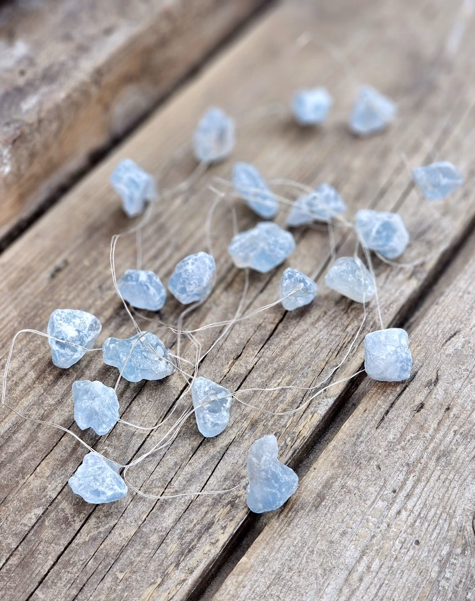 Förvandla vilket utrymme som helst till en plats av förtrollning med denna ljusslinga med kristaller! Njut av Celestitens lugnande och himmelska blå ljus. Dessa lampor ger en känsla av lugn och anslutning till den andliga sfären, vilket gör dem idealiska för meditationsutrymmen eller en lugn sovrumsatmosfär. Ljusslingorna kommer med en USB-kontakt som du enkelt kan ansluta till en USB-väggladdare, till datorn etc. Observera att en adapter inte ingår som en del av produkten. Säljes styckvis. De skiftar i utseende. Du köper en slumpvis liknande ljusslinga med kristaller enligt text & bild ovan. Tänk på att kristaller kommer från naturen & naturliga sprickor & ojämnhet kan förekomma. Färger kan skilja sig beroende på hur ljuset faller ner på kristallen samt även mellan olika bildskärmar m.m.