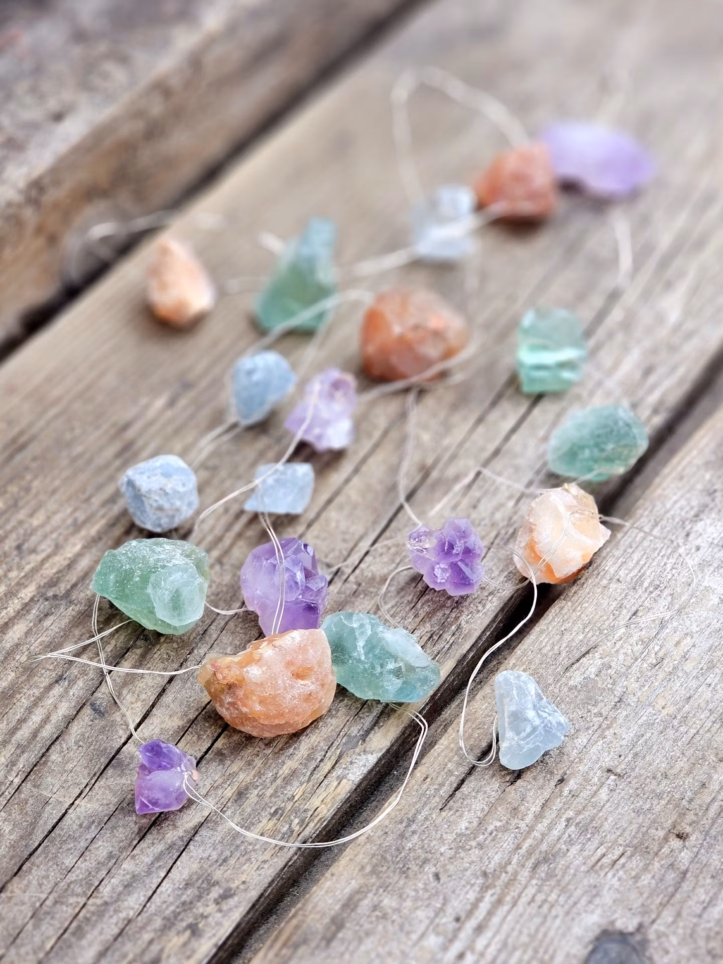Förvandla vilket utrymme som helst till en plats av förtrollning med denna ljusslinga med mixade kristaller! Skapa en lugn oas med dessa förtrollande stenar. Kristallerna i mixen är följande: Grön Fluorit, Ametist, Celestit och Karneol. Ljusslingorna kommer med en USB-kontakt som du enkelt kan ansluta till en USB-väggladdare, till datorn etc. Observera att en adapter inte ingår som en del av produkten. Säljes styckvis. De skiftar i utseende. Du köper en slumpvis liknande ljusslinga med kristaller enligt text & bild ovan. Tänk på att kristaller kommer från naturen & naturliga sprickor & ojämnhet kan förekomma. Färger kan skilja sig beroende på hur ljuset faller ner på kristallen samt även mellan olika bildskärmar m.m.
