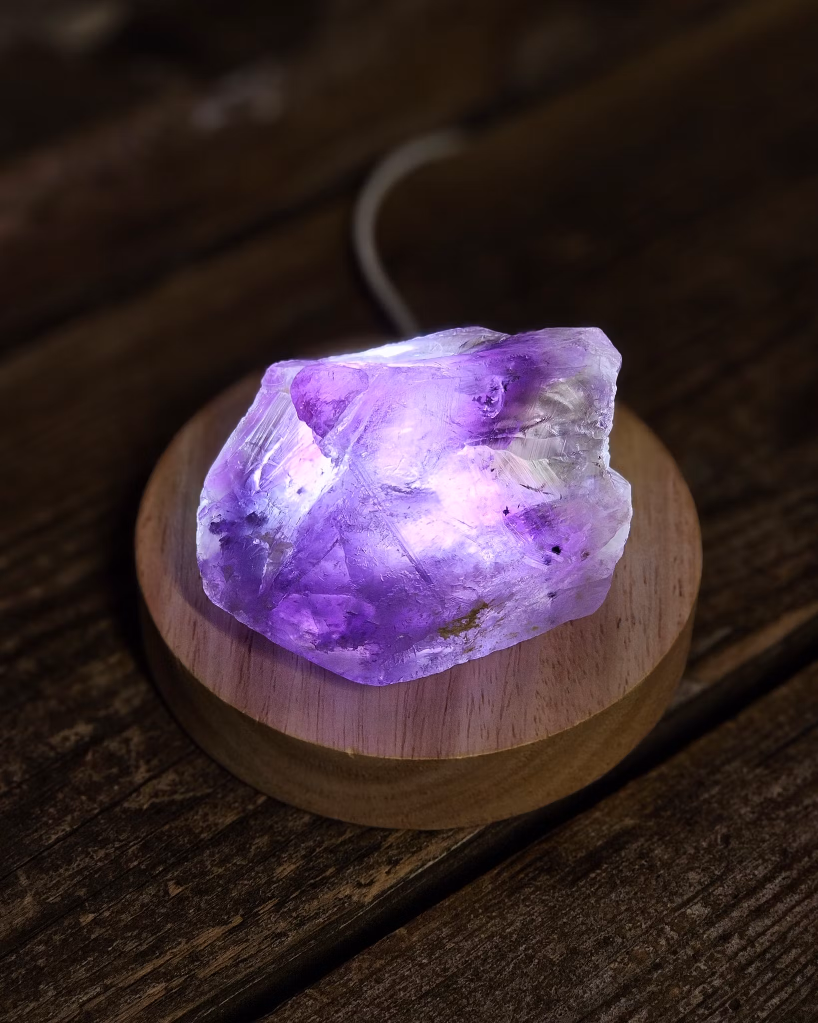 Fantastisk stor rå Ametist. Helt underbar! Kristallen på bilderna är den du köper. Dessa exemplar av rå Ametist lyser upp jättefint på våra ljusplattor! (Ljusplattor säljes separat i vår butik) Tänk på att kristaller kommer från naturen, små skillnader kan därför förekomma i produktens utseende på grund av dess naturmaterial. Färger kan skilja sig beroende på hur ljuset faller ner på kristallen samt även mellan olika bildskärmar m.m.