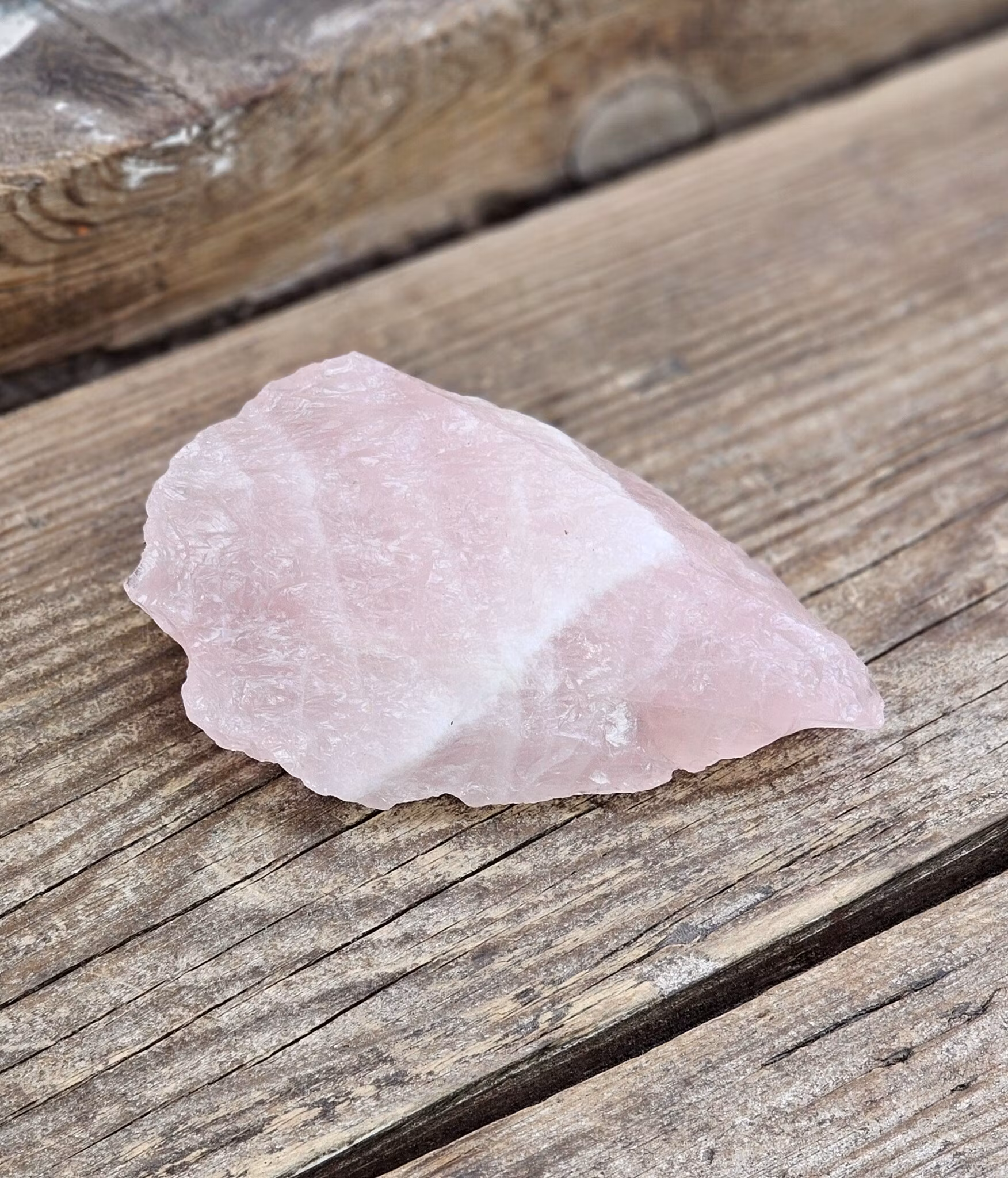 Detta är ett handplockat, unikt exemplar av rå Rosenkvarts med vacker rosa ton och naturlig struktur. Lätt inoljad för att framhäva sin färg och mönstring. Du får exakt stenen på bilderna. Perfekt som en meningsfull gåva, till dekoration och för att skapa kärleksfull energi i hemmet.