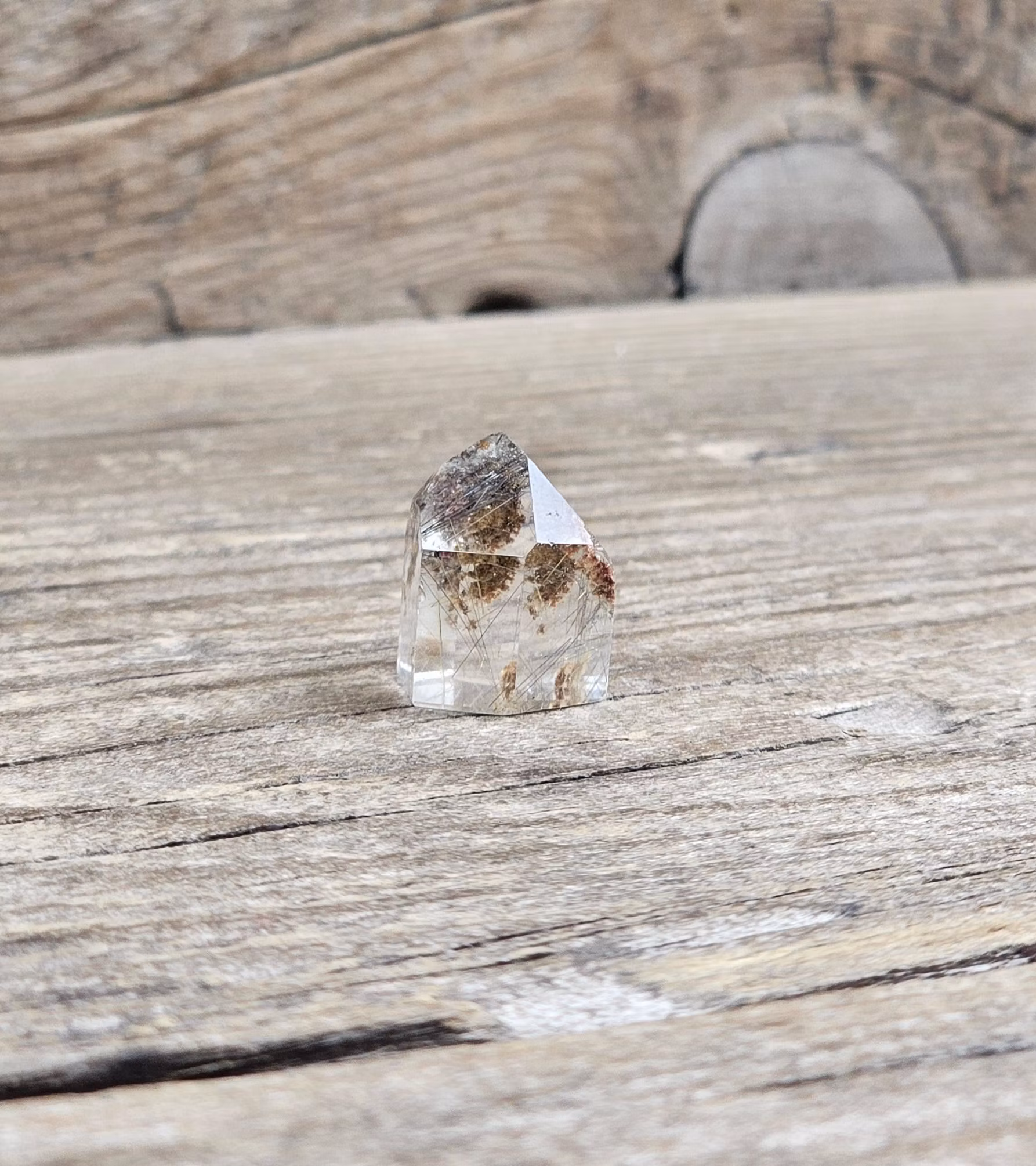 Otroligt vacker polerad spets i Guldrutilkvarts i mycket hög kvalité, inklusive inklusioner av Lodolit. Tänk på att kristaller kommer från naturen & naturliga sprickor & ojämnhet kan förekomma. Färger kan skilja sig beroende på hur ljuset faller ner på kristallen samt även mellan olika bildskärmar m.m.