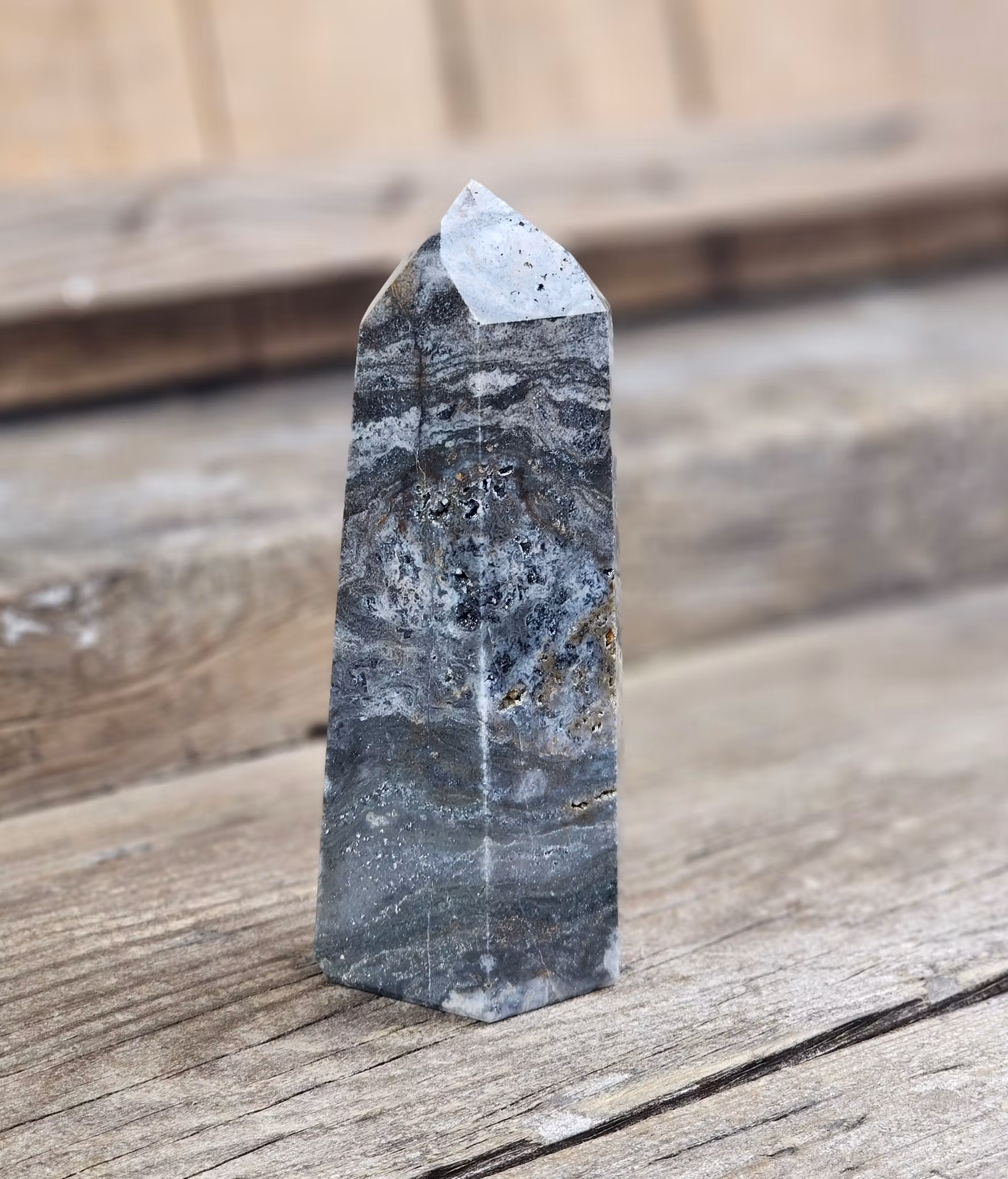 Otroligt fin stor polerad spets i Sphalerit. Tänk på att kristaller kommer från naturen & naturliga sprickor & ojämnhet kan förekomma. Färger kan skilja sig beroende på hur ljuset faller ner på kristallen samt även mellan olika bildskärmar m.m.