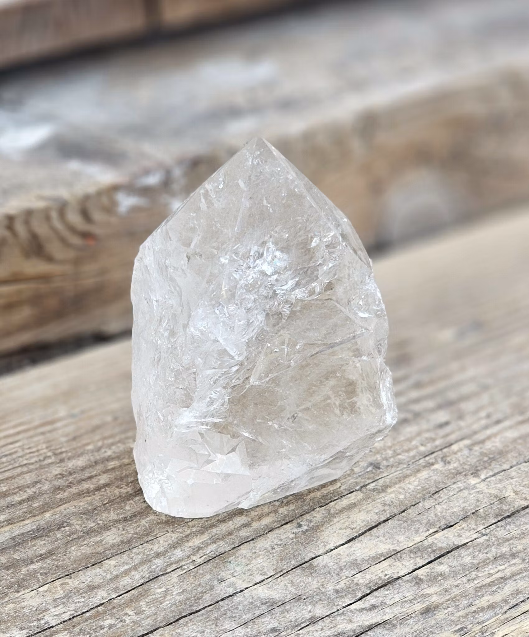 Underbar stående polerad spets i Bergkristall med fantastisk transparens, aningen rökig ton. Råa sidor. Ett superhärligt exemplar. Detta exemplar är även perfekt att ställa på en ljusplatta och låta hela kristallen lysa upp (ljusplatta säljes separat i vår butik). Kristallen på bilderna är den du köper. Tänk på att kristaller kommer från naturen, små skillnader kan därför förekomma i produktens utseende på grund av dess naturmaterial. Färger kan skilja sig beroende på hur ljuset faller ner på kristallen samt även mellan olika bildskärmar m.m.