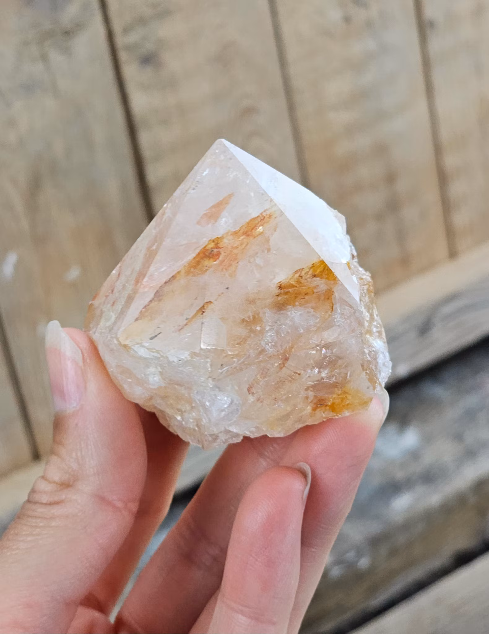 Mycket vacker stående polerad spets i Golden Healer med råa sidor. Superhärligt exemplar! Kristallen på bilderna är den du köper. Tänk på att kristaller kommer från naturen, små skillnader kan därför förekomma i produktens utseende på grund av dess naturmaterial. Färger kan skilja sig beroende på hur ljuset faller ner på kristallen samt även mellan olika bildskärmar m.m.