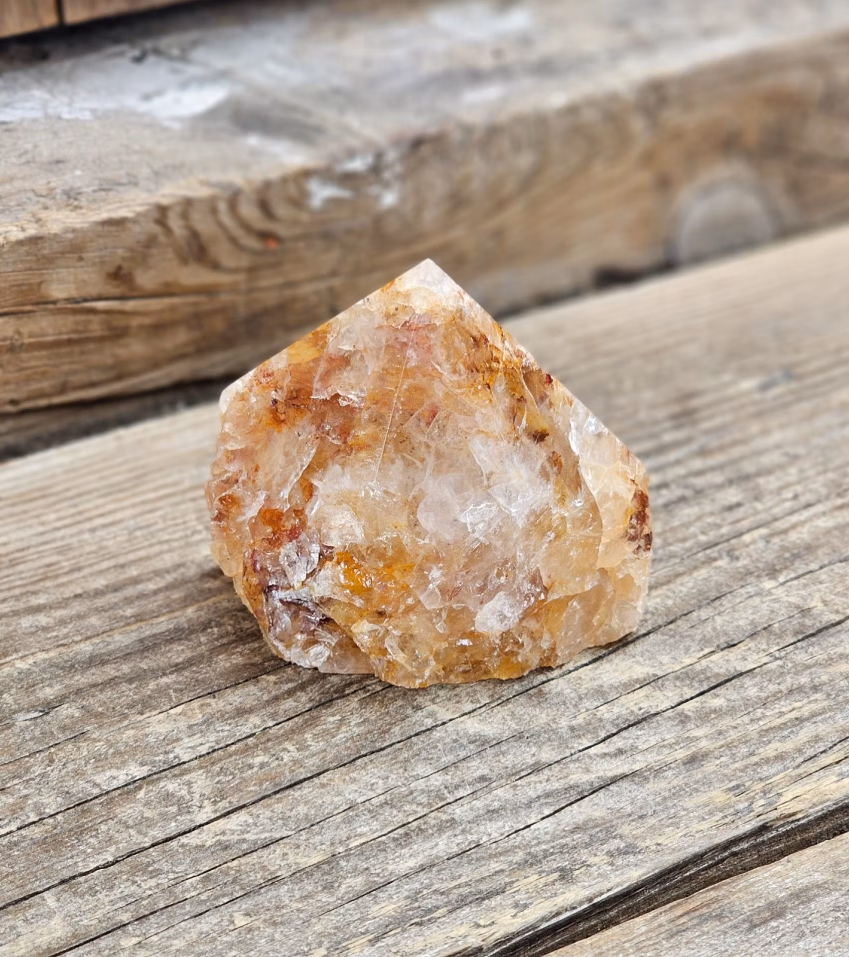 Mycket vacker stående polerad spets i Golden Healer med råa sidor. Superhärligt exemplar! Kristallen på bilderna är den du köper. Tänk på att kristaller kommer från naturen, små skillnader kan därför förekomma i produktens utseende på grund av dess naturmaterial. Färger kan skilja sig beroende på hur ljuset faller ner på kristallen samt även mellan olika bildskärmar m.m.