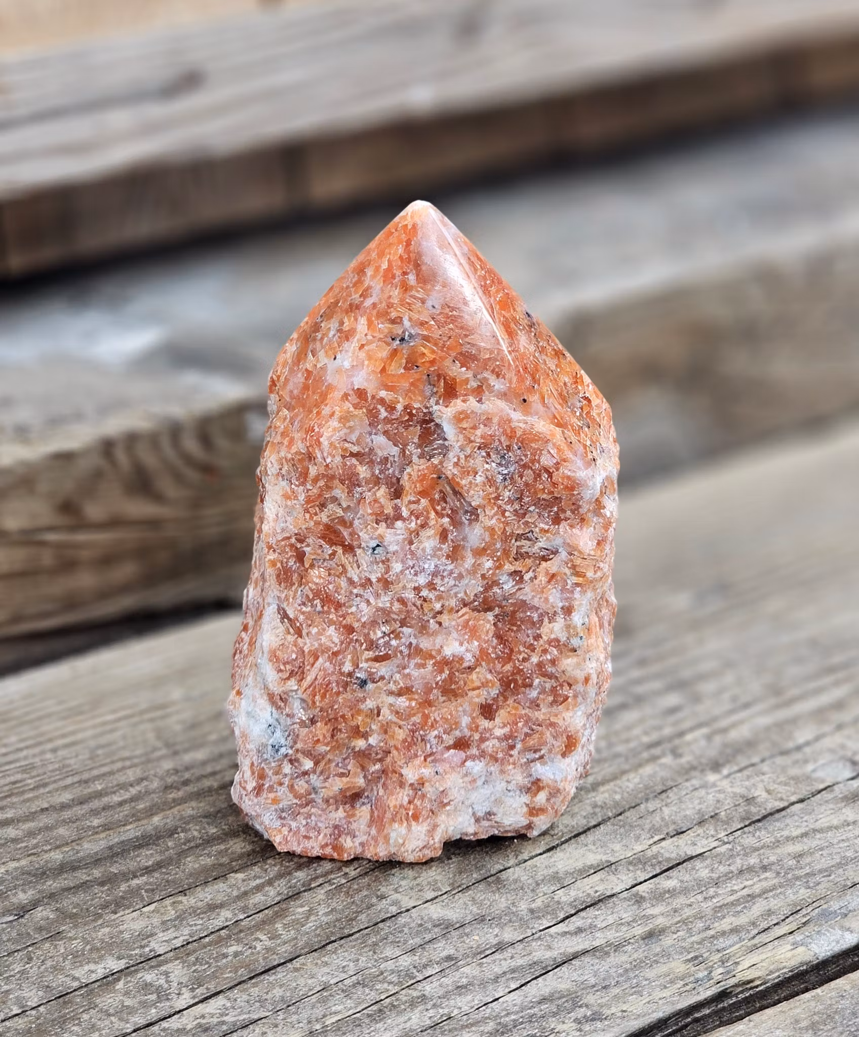 Observera att det finns ett litet nagg i spetsen. Därav prissänkt med -30% från ordinarie pris. Mycket vacker stående polerad spets i Orange Kalcit (Orkidé Kalcit) med råa sidor. Superhärligt exemplar med riktigt läcker färg! Kristallen på bilderna är den du köper. Tänk på att kristaller kommer från naturen, små skillnader kan därför förekomma i produktens utseende på grund av dess naturmaterial. Färger kan skilja sig beroende på hur ljuset faller ner på kristallen samt även mellan olika bildskärmar m.m.