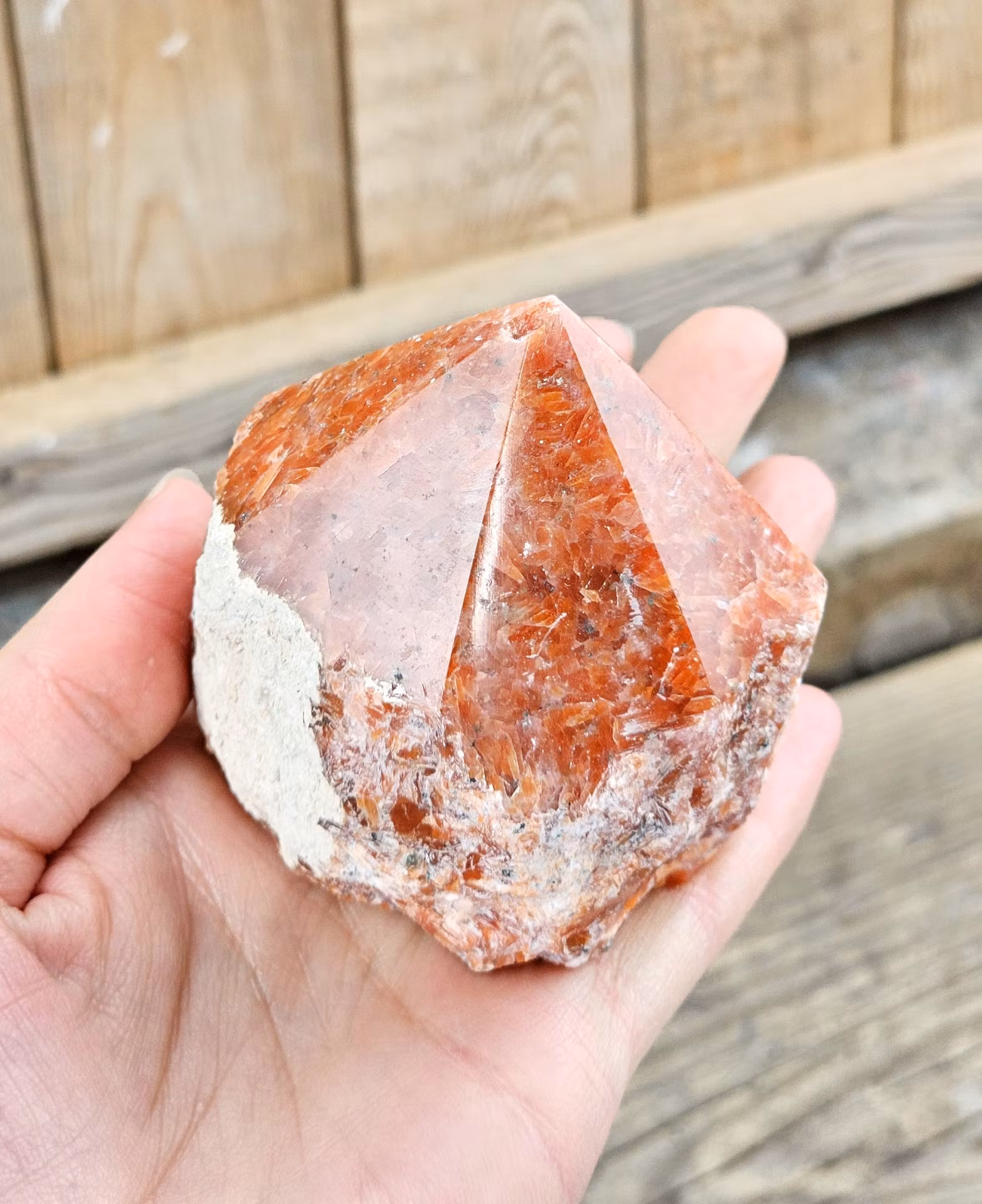 Observera att det finns ett nagg i spetsen. Därav prissänkt med -30% från ordinarie pris. Mycket vacker stående polerad spets i Orange Kalcit (Orkidé Kalcit) med råa sidor. Superhärligt exemplar med riktigt läcker färg! Kristallen på bilderna är den du köper. Tänk på att kristaller kommer från naturen, små skillnader kan därför förekomma i produktens utseende på grund av dess naturmaterial. Färger kan skilja sig beroende på hur ljuset faller ner på kristallen samt även mellan olika bildskärmar m.m.