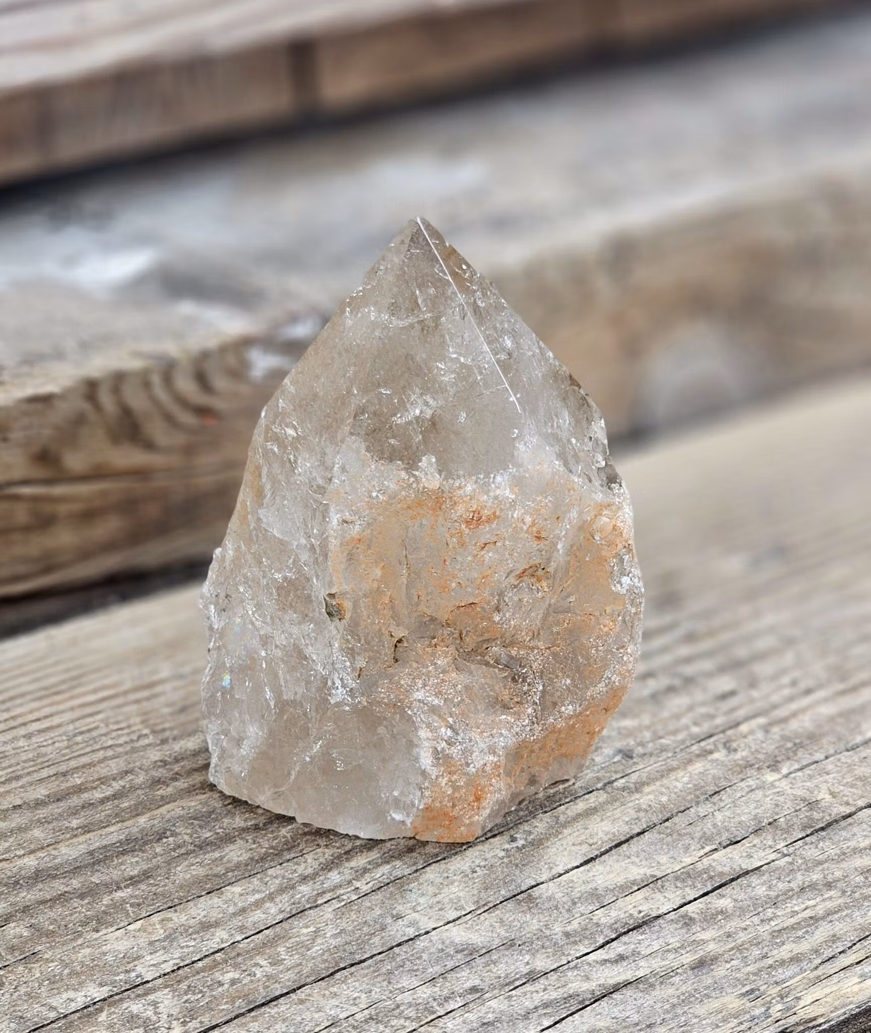 Underbar stående polerad spets i Rökkvarts. Råa sidor och slipad botten. Superhärligt exemplar. Detta exemplar är även perfekt att ställa på en ljusplatta och låta hela kristallen lysa upp (ljusplatta säljes separat i vår butik). Kristallen på bilderna är den du köper. Tänk på att kristaller kommer från naturen, små skillnader kan därför förekomma i produktens utseende på grund av dess naturmaterial. Färger kan skilja sig beroende på hur ljuset faller ner på kristallen samt även mellan olika bildskärmar m.m.
