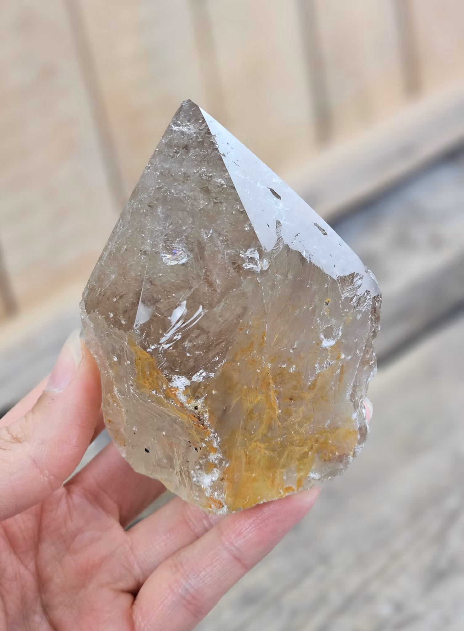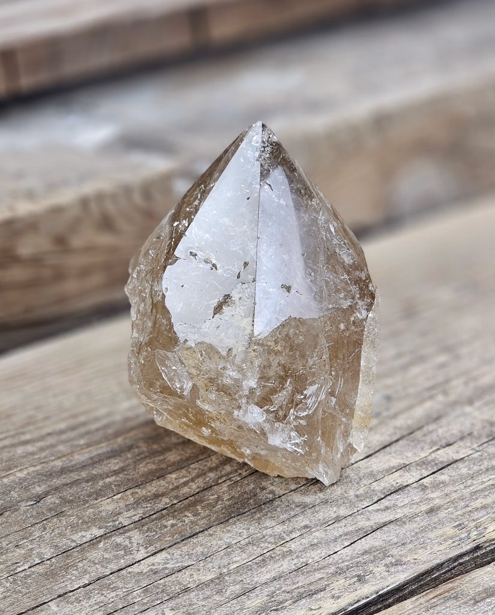 Observera att det finns ett nagg i spetsen. Därav prissänkt med -30% från ordinarie pris. Underbar stående polerad spets i Rökkvarts. Råa sidor och slipad botten. Superhärligt exemplar. Detta exemplar är även perfekt att ställa på en ljusplatta och låta hela kristallen lysa upp (ljusplatta säljes separat i vår butik). Kristallen på bilderna är den du köper. Tänk på att kristaller kommer från naturen, små skillnader kan därför förekomma i produktens utseende på grund av dess naturmaterial. Färger kan skilja sig beroende på hur ljuset faller ner på kristallen samt även mellan olika bildskärmar m.m.
