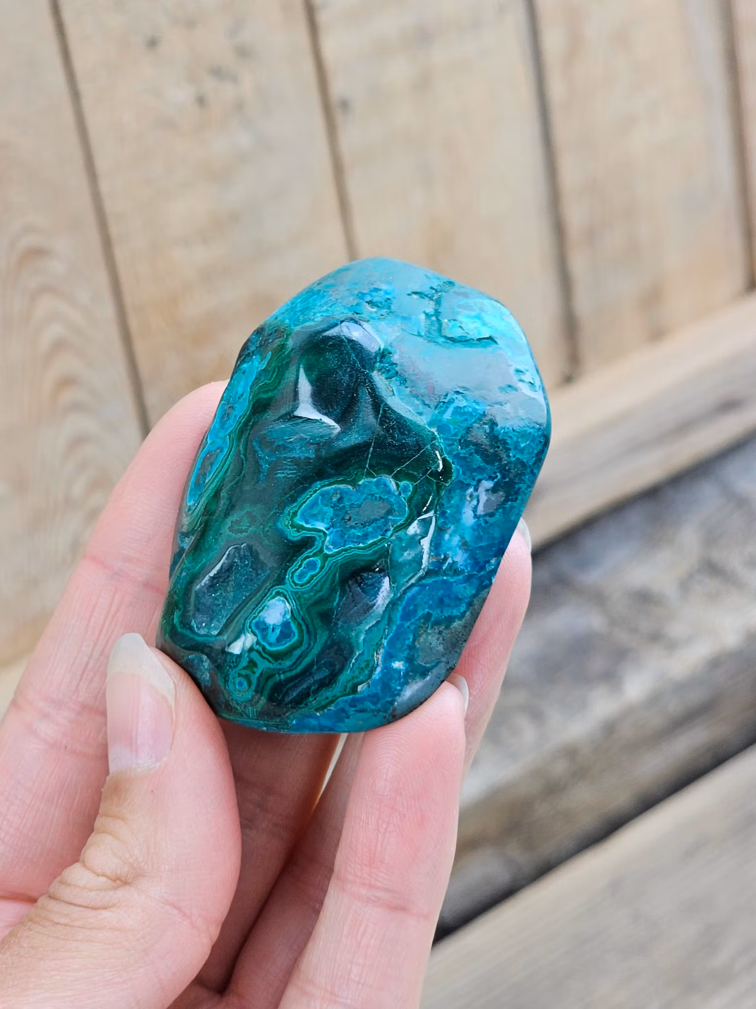 Malakolla är en exceptionell kristall som består av en kombination av de fantastiska kristallerna Malakit och Krysokolla. Ett sammansatt mineral bildat av kombinationen av Malakit (grönt kopparkarbonat) och Krysokolla (blågrönt kopparsilikat). Denna variant bildas i kopparrika miljöer genom vittring och oxidation av kopparmalmer. När kopparmineraler bryts ner kristalliseras dessa varianter tillsammans, ofta i torra eller halvtorra områden, gynnsamma förhållanden tillåter båda mineralerna att växa tillsammans. Det resulterande materialet har en unik blandning av naturliga blå och gröna nyanser med slående mönster. Malakolla är högt eftertraktad och en mer sällsynt sten, en mycket tilltalande kombination med underbara färger.