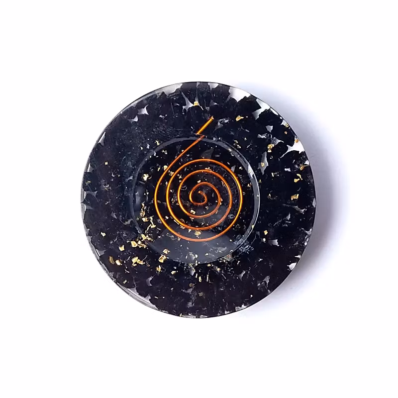I ställningen finns en kopparspiral (SBB-coil). I orgonitdesign används spiralen för att fokusera och rikta energiflödet – ofta lindas den medurs, vilket anses ge ett mer utåtriktat, harmoniserande flöde. Detta är en traditionell tolkning utan vetenskapligt stöd; många uppskattar den både för känslan och som dekorativ detalj.