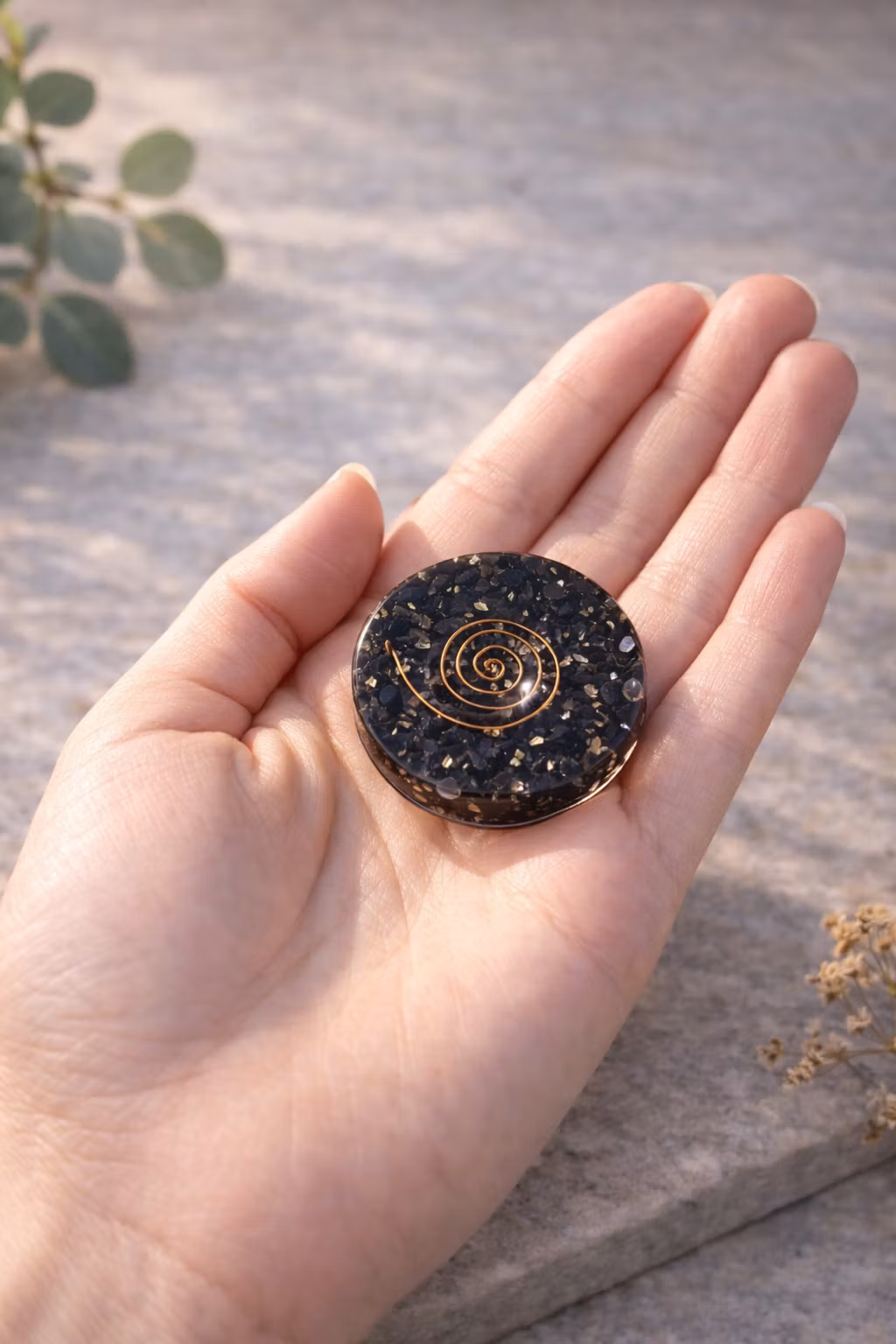 • Material: Orgonit (resin, koppar och kristallchips).