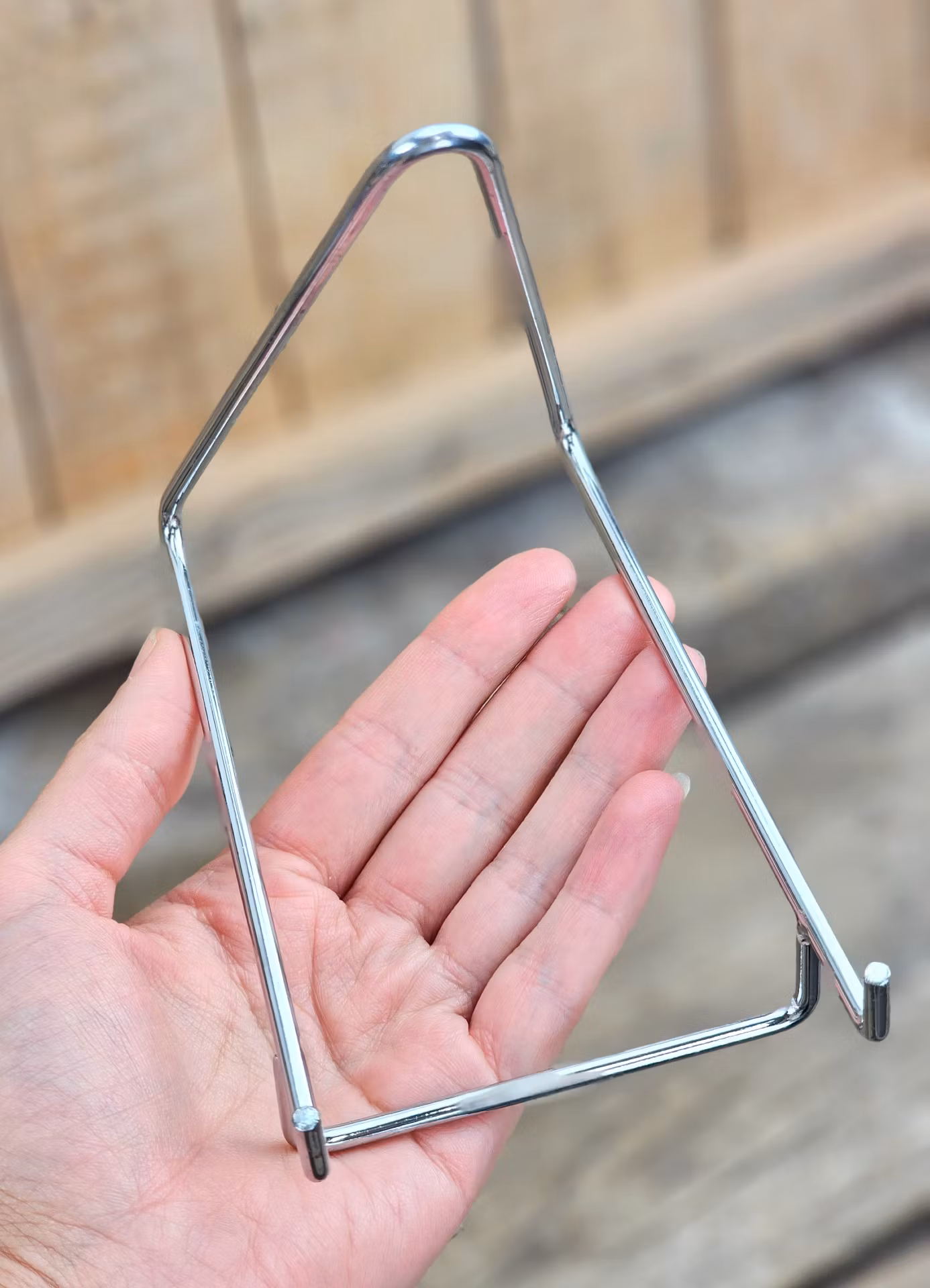 Visa upp din kristall med en elegant ställning. Den här ställningen passar till rätt så stora objekt. Denna enkla metallställning erbjuder en sofistikerad och stilren presentation, vilket ger en exklusiv känsla till ditt samlarobjekt. Perfekt för att lyfta fram skönheten i din samling. Säljes styckvis, kristaller/fossiler ingår ej. Du köper en ställning enligt text & bild. Färger kan skilja sig beroende på hur ljuset faller ner på produkten samt även mellan olika bildskärmar m.m.