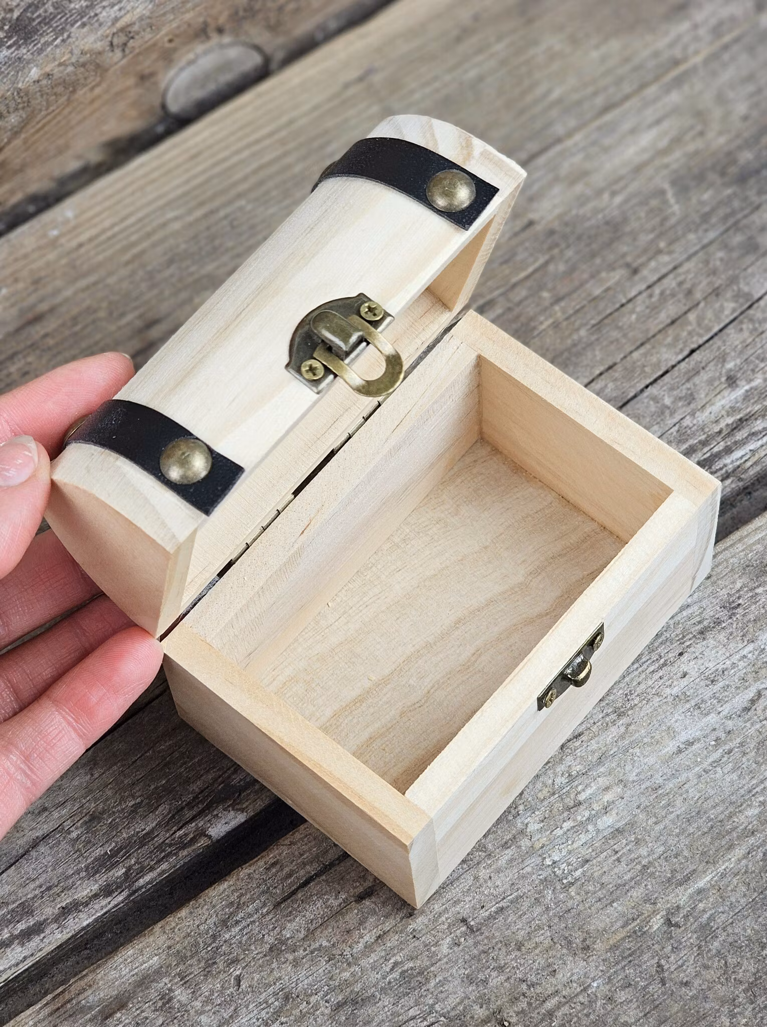 Jättefina skattkistor i trä (tall) med svarta detaljer i läderimitation. Denna skattkista är fylld med ca. 200 gram trumlade stenar! Stenarna du får varierar mellan många olika trumlade sorter i storlek ca. 1-3 cm. Mycket prisvärt! Stenarna är ej uppmärkta med namn. Skattkistorna säljes styckvis. Du köper en slumpvis liknande produkt enligt text & bild ovan. Färger kan skilja sig beroende på hur ljuset faller ner på produkten samt även mellan olika bildskärmar m.m.