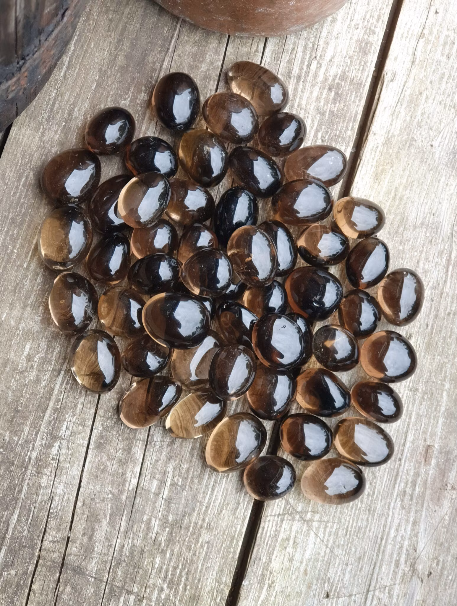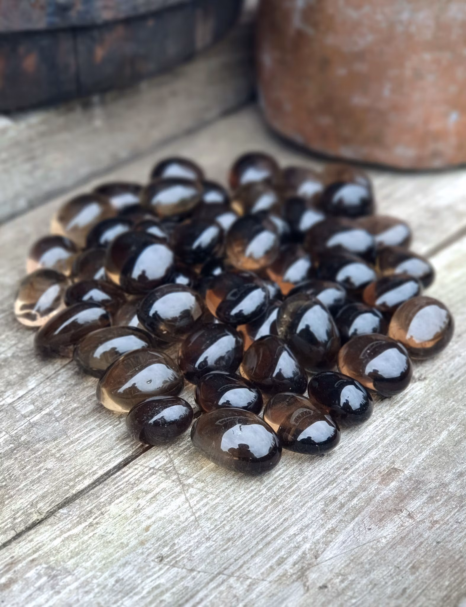 Mycket vacker trumlad Rökkvarts med runda former! Underbara exemplar i toppkvalité. Säljes styckvis. De skiftar i utseende och form. Du köper en kristall enligt text & bild ovan. Tänk på att kristaller kommer från naturen, små skillnader kan därför förekomma i produktens utseende på grund av dess naturmaterial. Färger kan skilja sig beroende på hur ljuset faller ner på kristallen samt även mellan olika bildskärmar m.m.