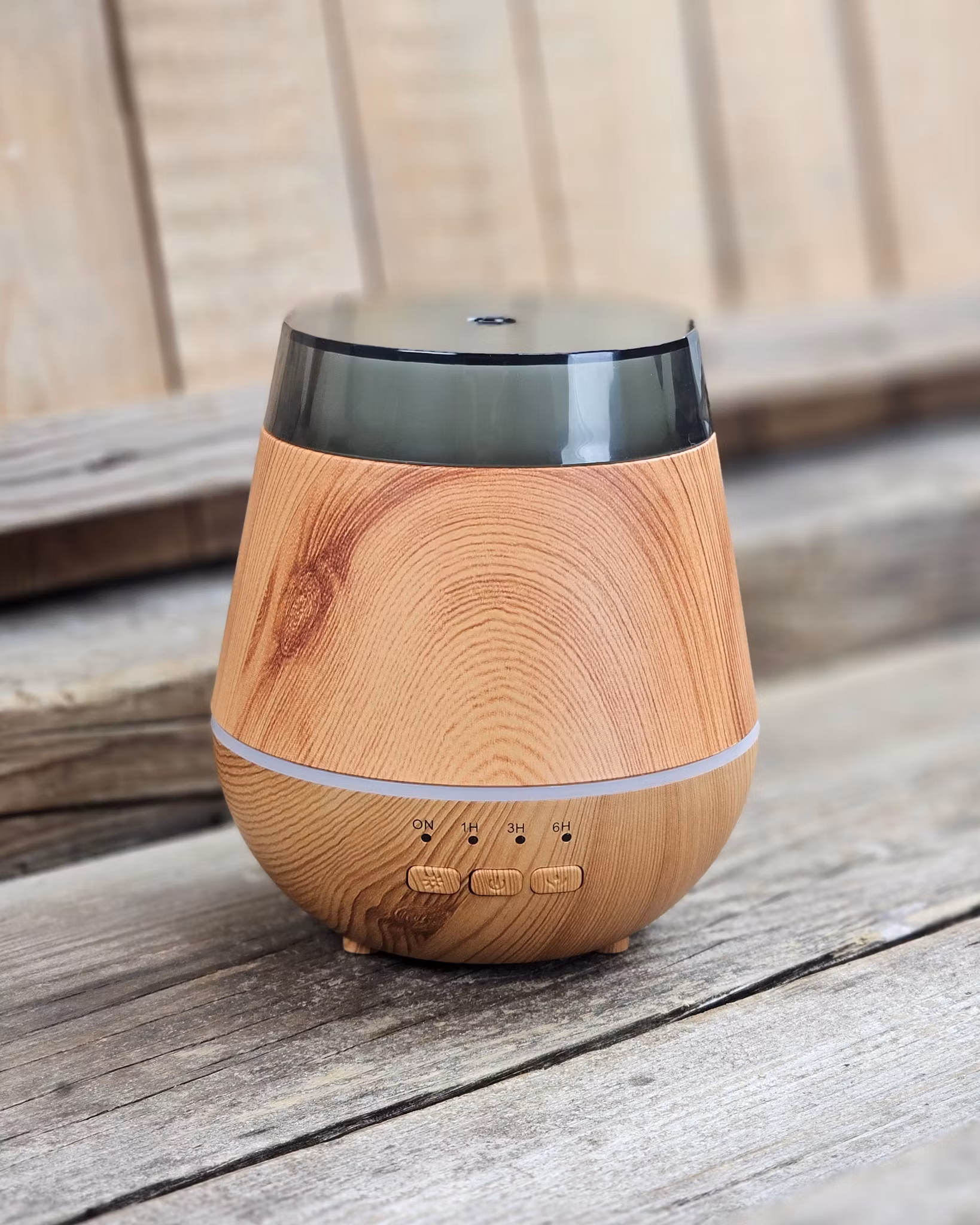 En aromadiffuser sprider din eterisk olja i en doftande ånga som släpps ut på ovansidan. Du kan med fördel välja oljor med olika syften, t.ex. lavendel för en lugnande och avslappnande atmosfär. Använd eterisk olja för en verkligt tillfredsställande spaupplevelse i ditt hem. Du kan genom att andas in ångan avnjuta de aromatiska fördelarna med eteriska oljor utan att applicera dem på huden.