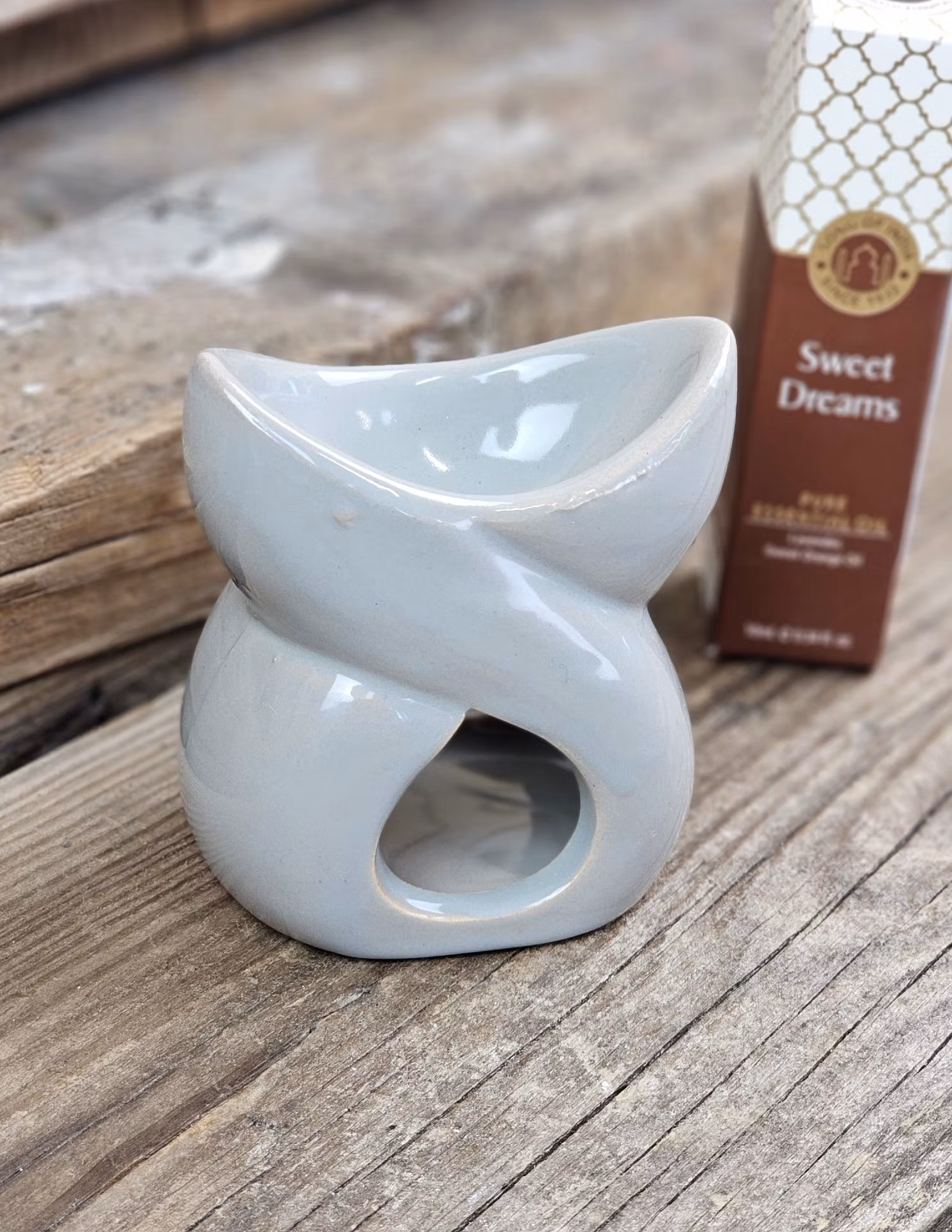 Oljebrännare i enkel elegans gjord av keramik i en ljusgrå färg. Denna diffuser är det traditionella sättet att sprida dofter i hemmet. Skålen upptill fylls med vatten och du droppar därefter i några droppar valfri aromaolja (ca. 3-8 droppar olja ungefär, beror på varje specifik sort samt önskad effekt). Med hjälp av värmeljuset undertill värms vatten-oljeblandningen varsamt upp och den läckra doften sprider sig i hela rummet. En väldoftande, trevlig atmosfär skapas där du kan ta fördel av olika dofters egenskaper inom aromaterapi. Denna produkt passar även med aromavax. Placeras på en värmetålig plats. Rör inte eller flytta den under användning, den blir mycket varm. Lämna aldrig tända ljus obevakade. Håll utom räckhåll från barn och djur. Säljes styckvis. Doftoljor ingår ej, köpes separat i vår butik. Rengörs med fuktad trasa och mild såpa, produkten tål ej maskindisk eller mikrovågsugn. Du köper en oljebrännare enligt text & bild ovan. Färger kan skilja sig beroende på hur ljuset faller ner på produkten samt även mellan olika bildskärmar m.m.