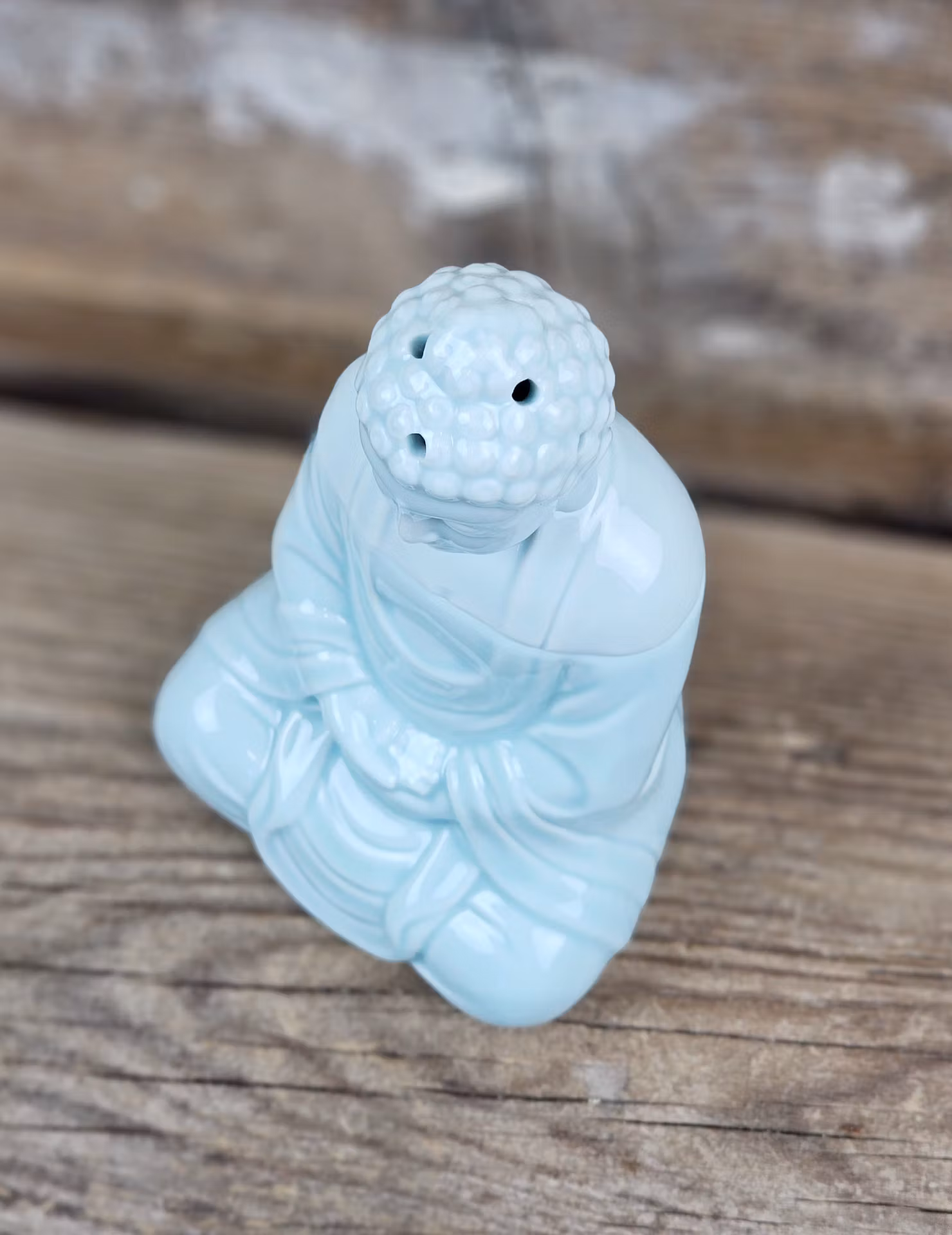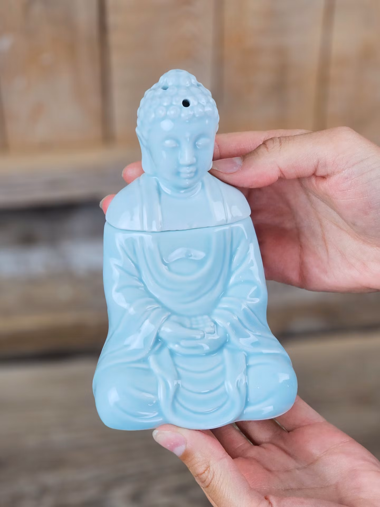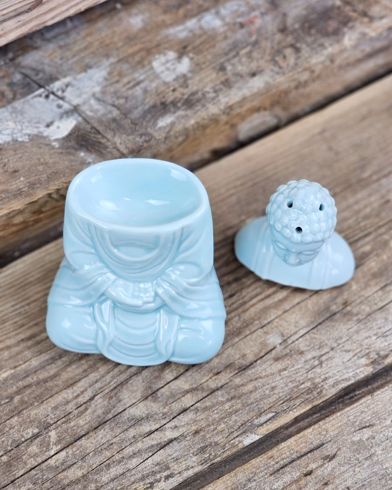 Aromalampa, diffuser ljusblå keramik sitting Buddha