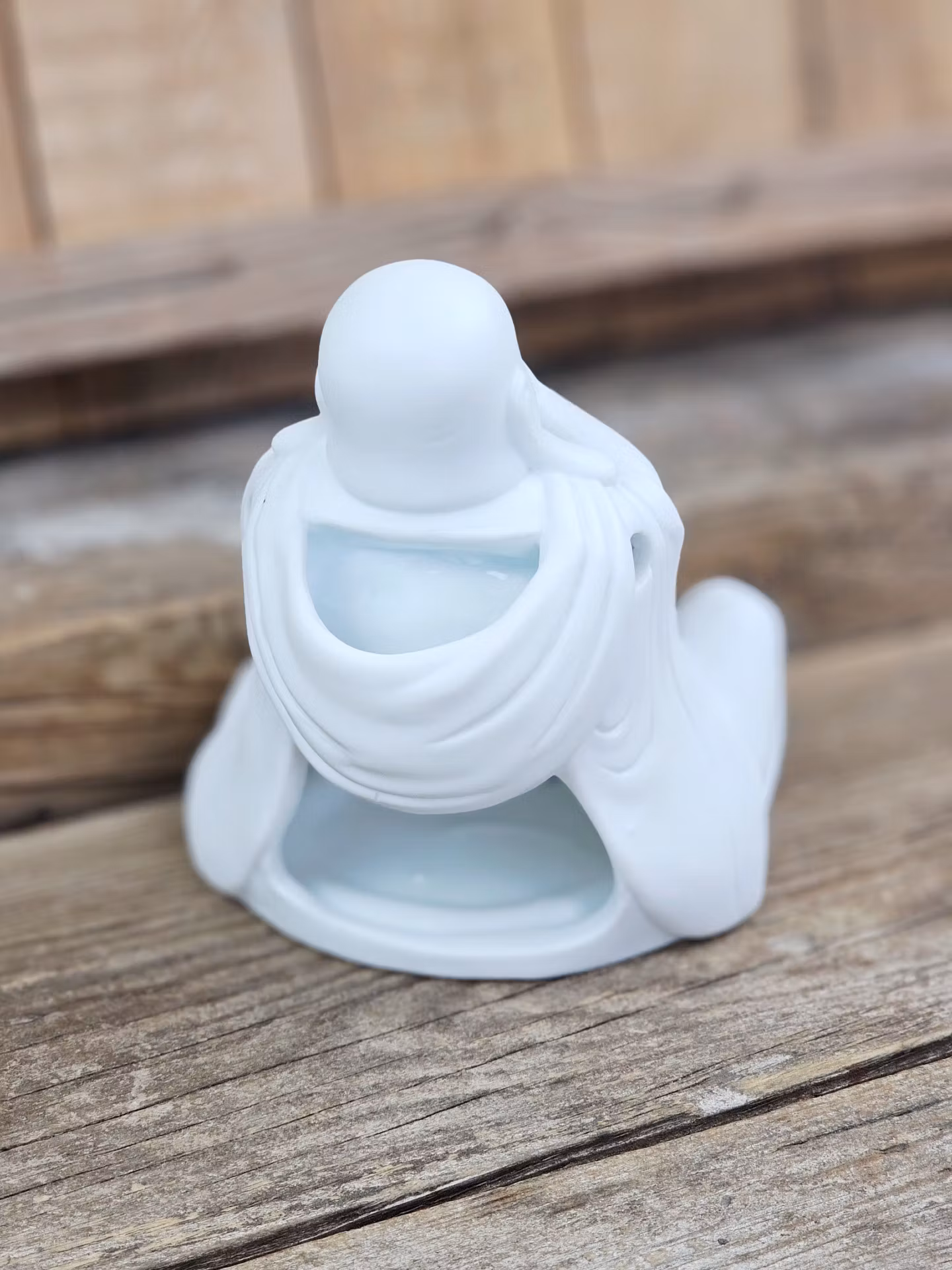 Aromalampa, diffuser vit keramik stor Buddha x3 (inte se/höra/tala) utgående