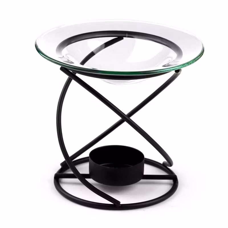 Oljebrännare / Aromalampa – Harmoni Svart, doftspridare i metall & glas