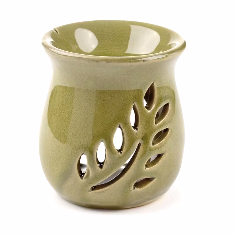 En jordnära aromalampa i olivgrön keramik med mjukt utskuret bladmönster. Skapa lugn, varm hemmakänsla vid avkoppling, meditation eller kvällsro. Används med doftolja eller doftvax/melts för en mild och harmonisk doftspridning. Säljs styckvis.