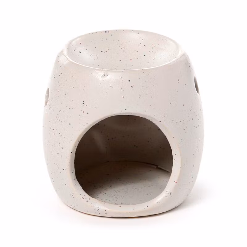 En ljus och stilla oljebrännare i matt vit keramik med mjukt ansiktsmotiv och spräcklad glasyr. Ger en ren och mild atmosfär vid morgonstund, meditation eller kvällsro. Används med doftolja eller doftvax/melts för en mjuk doftspridning. Säljs styckvis.