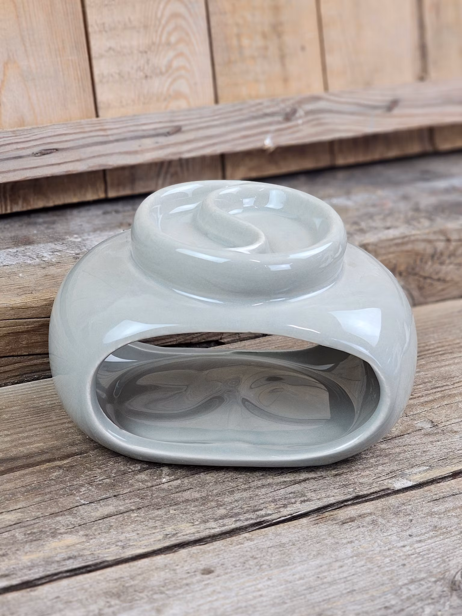 Oljebrännare i enkel elegans gjord av keramik i en ljusgrå färg med fantastisk funktion då du kan experimentera och kombinera två av dina favoritoljor på samma gång i varsitt fack. Denna diffuser är det traditionella sättet att sprida dofter i hemmet. Skålen upptill fylls med vatten och du droppar därefter i några droppar valfri aromaolja (ca. 3-8 droppar olja ungefär, beror på varje specifik sort samt önskad effekt). Med hjälp av värmeljuset undertill värms vatten-oljeblandningen varsamt upp och den läckra doften sprider sig i hela rummet. En väldoftande, trevlig atmosfär skapas där du kan ta fördel av olika dofters egenskaper inom aromaterapi. Denna produkt passar även med aromavax. Placeras på en värmetålig plats. Rör inte eller flytta den under användning, den blir mycket varm. Lämna aldrig tända ljus obevakade. Håll utom räckhåll från barn och djur. Säljes styckvis. Doftoljor ingår ej, köpes separat i vår butik. Rengörs med fuktad trasa och mild såpa, produkten tål ej maskindisk eller mikrovågsugn. Du köper en oljebrännare enligt text & bild ovan. Färger kan skilja sig beroende på hur ljuset faller ner på produkten samt även mellan olika bildskärmar m.m.