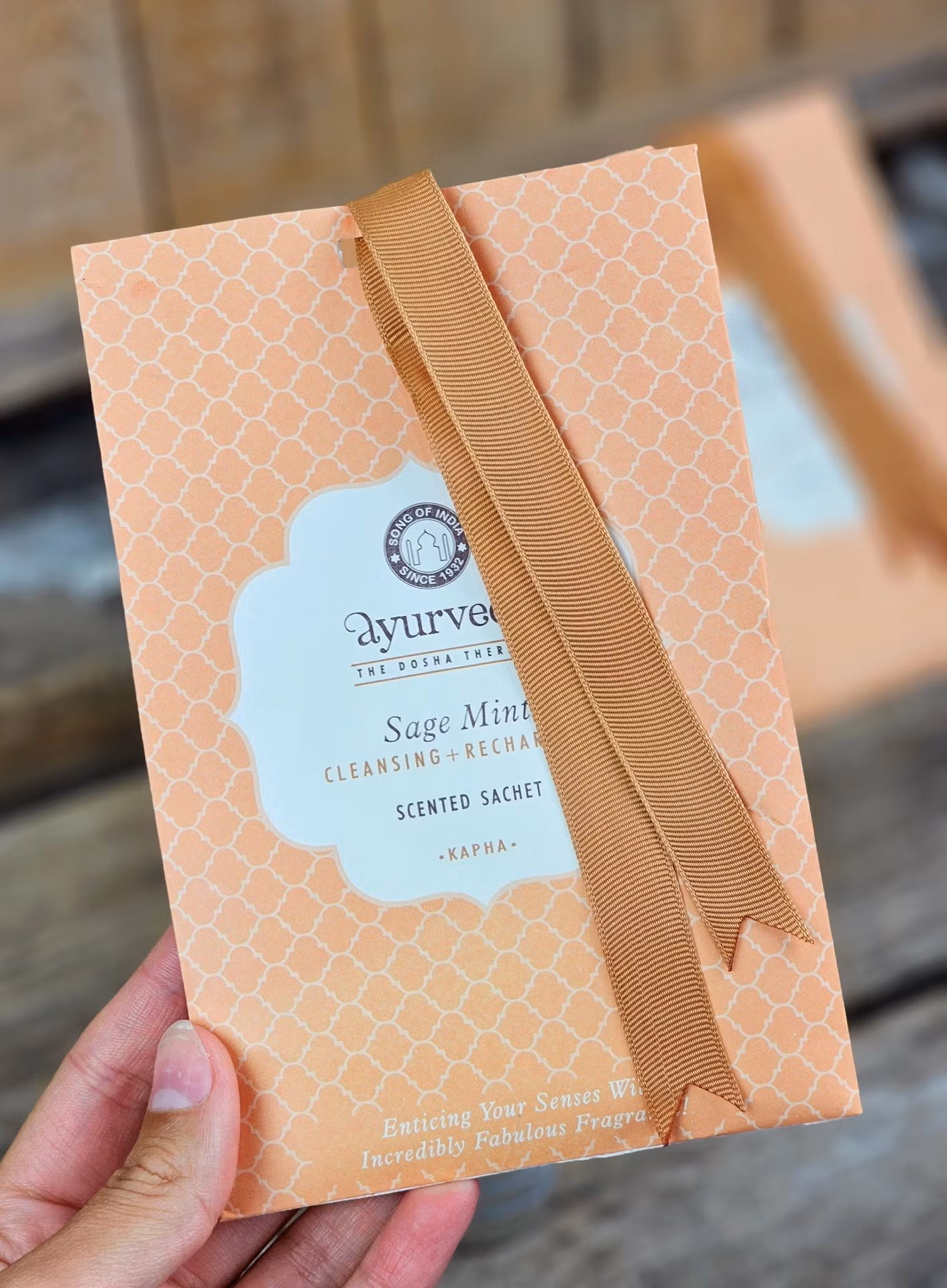 Doft: Kapha Sage Mint. (Salvia & Mint) Örtig och fräsch doft. Denna jordnära blandning av helig salvia renar omgivningen, medan myntbladens svalkande egenskaper håller dig laddad och pigg hela dagen. Passar bra med kapha dosha.